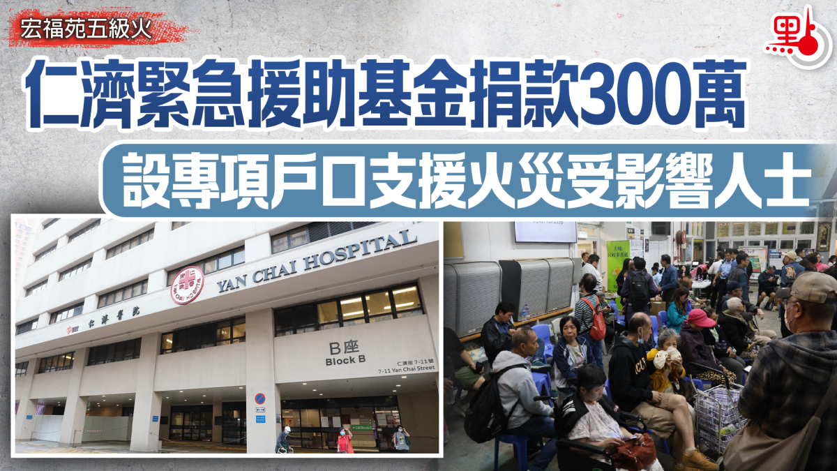 仁濟醫院表示,為支援大埔宏福苑受火災影響人士度過難關,仁濟醫院董事局將從「仁濟緊急援助基金」中撥款300萬元港幣。「仁濟緊急援助基金」將優先用於為經濟困難的死者家屬提供援助,協助災民逐步重建生活,基金將會向每名遇難者家屬提供2萬元殮葬援助津貼。