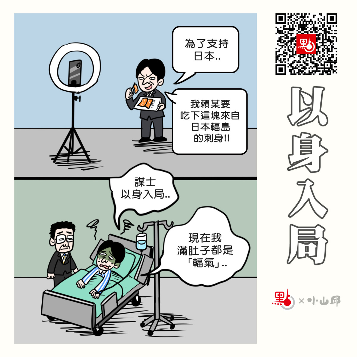 日本首相高市早苗發表涉台挑釁言論,中國大陸推出多項反制措施,包括暫停日本水產品進口。台當局領導人賴清德日前卻在社交媒體貼出吃日本料理的照片,表態力挺日本水產品,台「食藥署」隨後公告全面解除日本福島五縣食品輸入管制。對於台當局與日方勾連的行徑,島內一片罵聲。