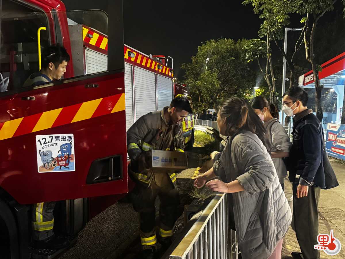 【點新聞報道】今晚(27日),在宏福苑五級火災救援現場,出現一幕動人場景。十幾名市民帶着救援物資前往火災現場,將溫暖直接傳遞給守在一線救災的消防人員。
