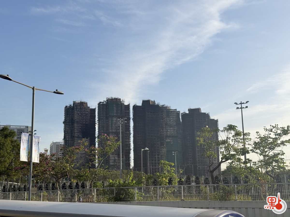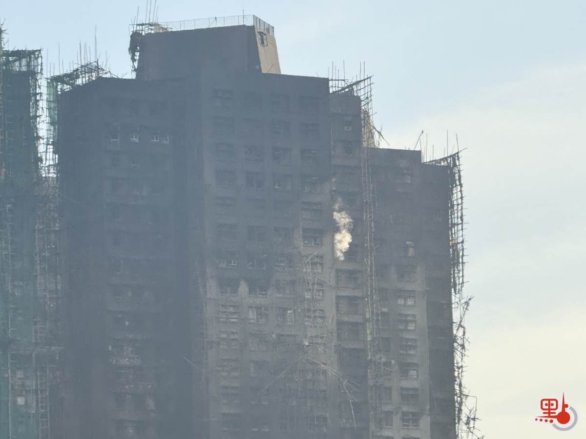 點新聞記者今早約8時抵達宏福苑火警現場附近,從大埔墟港鐵站方向觀察,樓體已無明顯火舌,現場煙霧亦較昨日大幅減退,僅餘一處窗口仍有少量煙霧冒出。消防處預計今早9時可完成宏福苑7座所有單位的破門搜索工作。