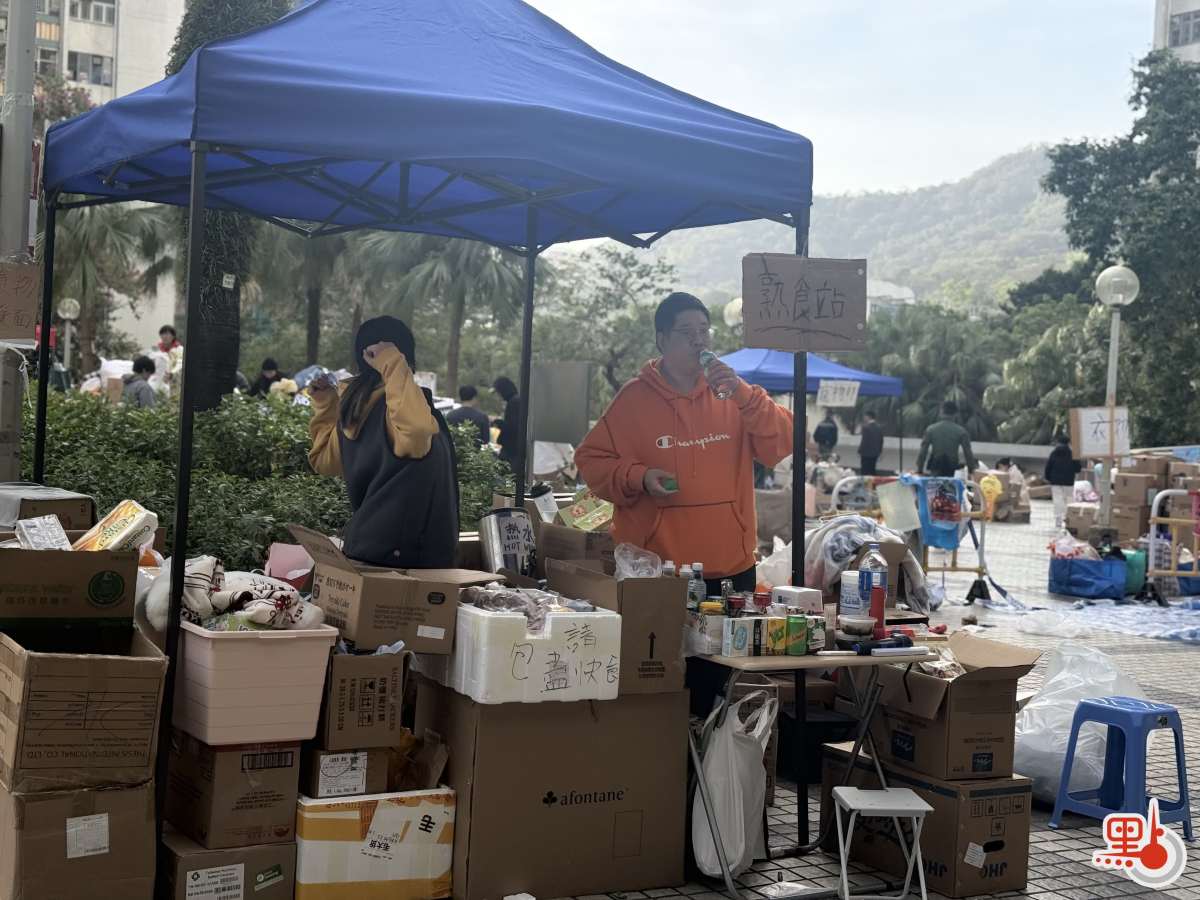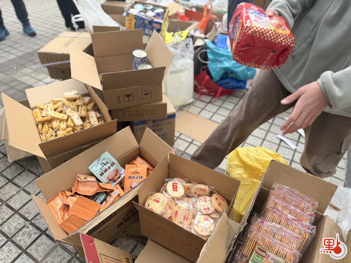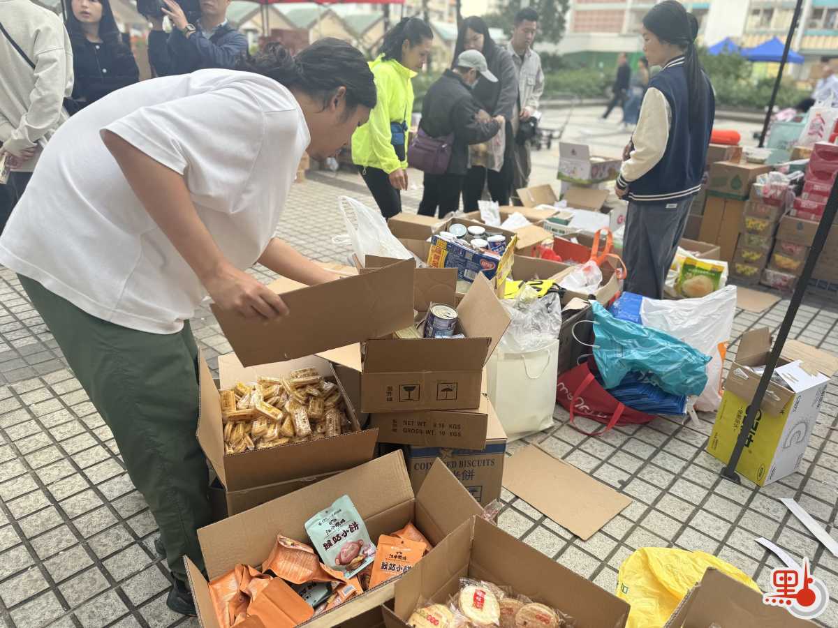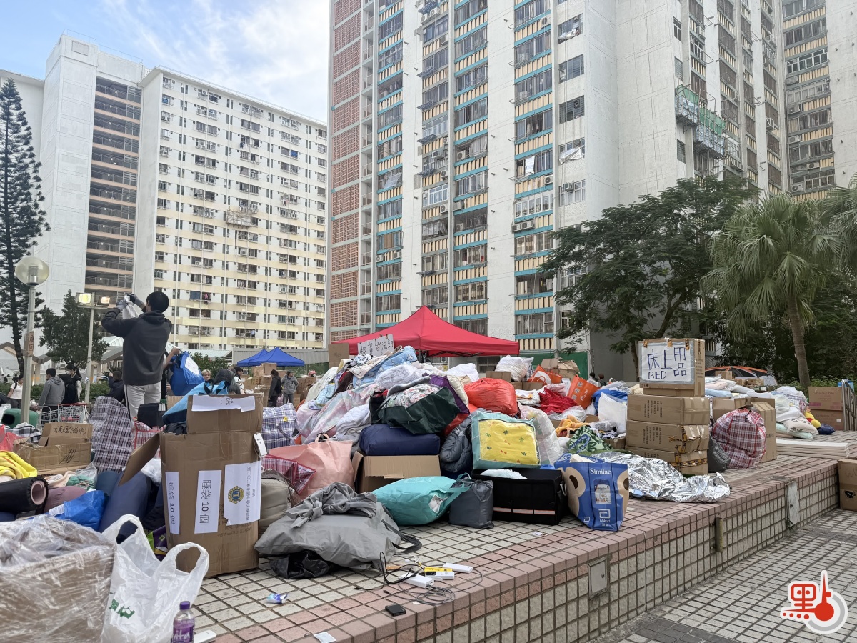 另外,今早8時許,廣福天台已有義工陸續到場為街坊派發物資,除常見的衣物與食物外,今日亦見到有寵物部,提供狗糧、貓糧及寵物零食等用品。現場亦貼有市民自行繪製的紙板指示牌,標明各類物資的分配區、記者休息室、充電區等位置。