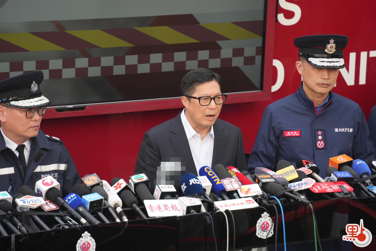 【點新聞報道】消防處今日(28日)下午舉行記者會,簡報大埔宏福苑五級火最新救援情況。保安局局長鄧炳強首先對大埔宏福苑發生嚴重火警的所有死傷人士,包括殉職的消防員以及他們所有的家人,致以最深切的哀悼和慰問。
