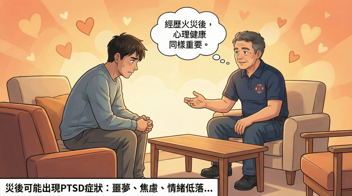 圖:消防員叔叔溫和地講解,災後心理健康的重要