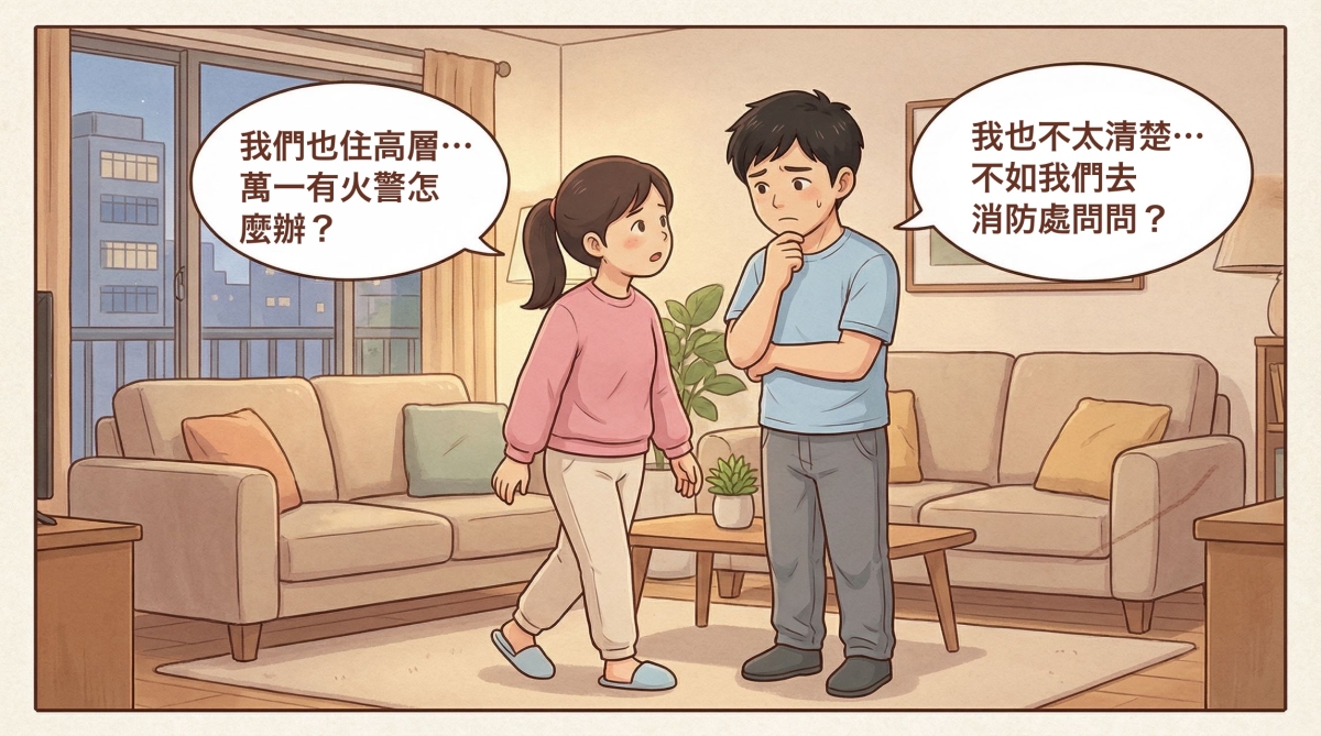 圖:阿明和阿琳在家中,準備進行安全檢查,表情認真