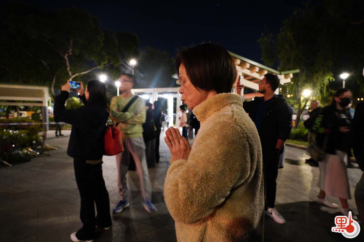 【點新聞報道】大埔宏福苑前日(26日)發生五級大火,造成嚴重傷亡,全城為之哀慟。點新聞記者今晚(28日)在火災現場附近所見,有市民自發前往悼念,有人在場祈禱,亦有人獻上鮮花,寄託哀思。