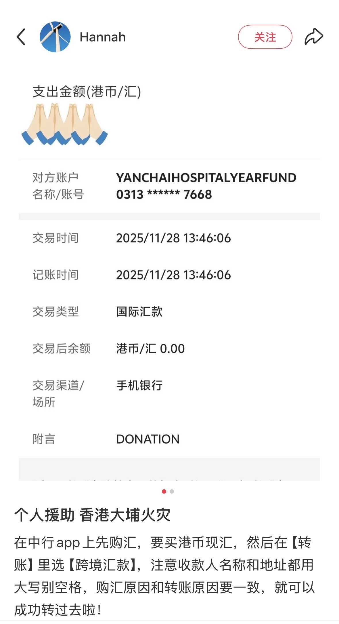 像這樣低調的、默默無聞的捐款者還有很多。記者在小紅書上搜索相關帖子時,不少人曬出自己第一筆成功跨境匯款的截圖,表達「希望能幫到香港同胞」的質朴心愿。但大部分人亦婉拒了記者的採訪請求,表示自己只是略盡綿力,「只求香港平安,不值得特別報道」。