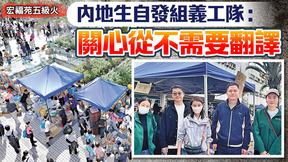 大埔宏福苑火災牽動無數港人與祖國同胞的心。記者昨日現場所見,在冷風帶來的寒意中,一股股暖流從四面八方湧向大埔廣福商場平台,熱心市民自發運送糧水、毛巾、棉被等物資,支援受影響居民;亦有來自內地的大學生自發組織義工隊,突破語言障礙,深感「災難面前,關心從不需要翻譯。」而這場自發的愛心行動,展現了在災難面前「大愛無疆」的感人精神。
