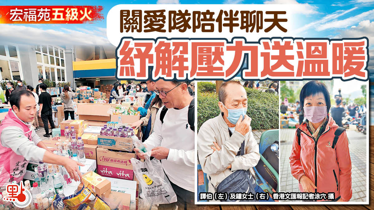 「有人陪伴、有人傾訴,已是很大的安慰。」住在宏福苑附近的居民在接受記者訪問時表示,關愛隊的關心和慰問讓他們能夠平伏緊張不安的心情,他們的支援為災民帶來了溫暖。