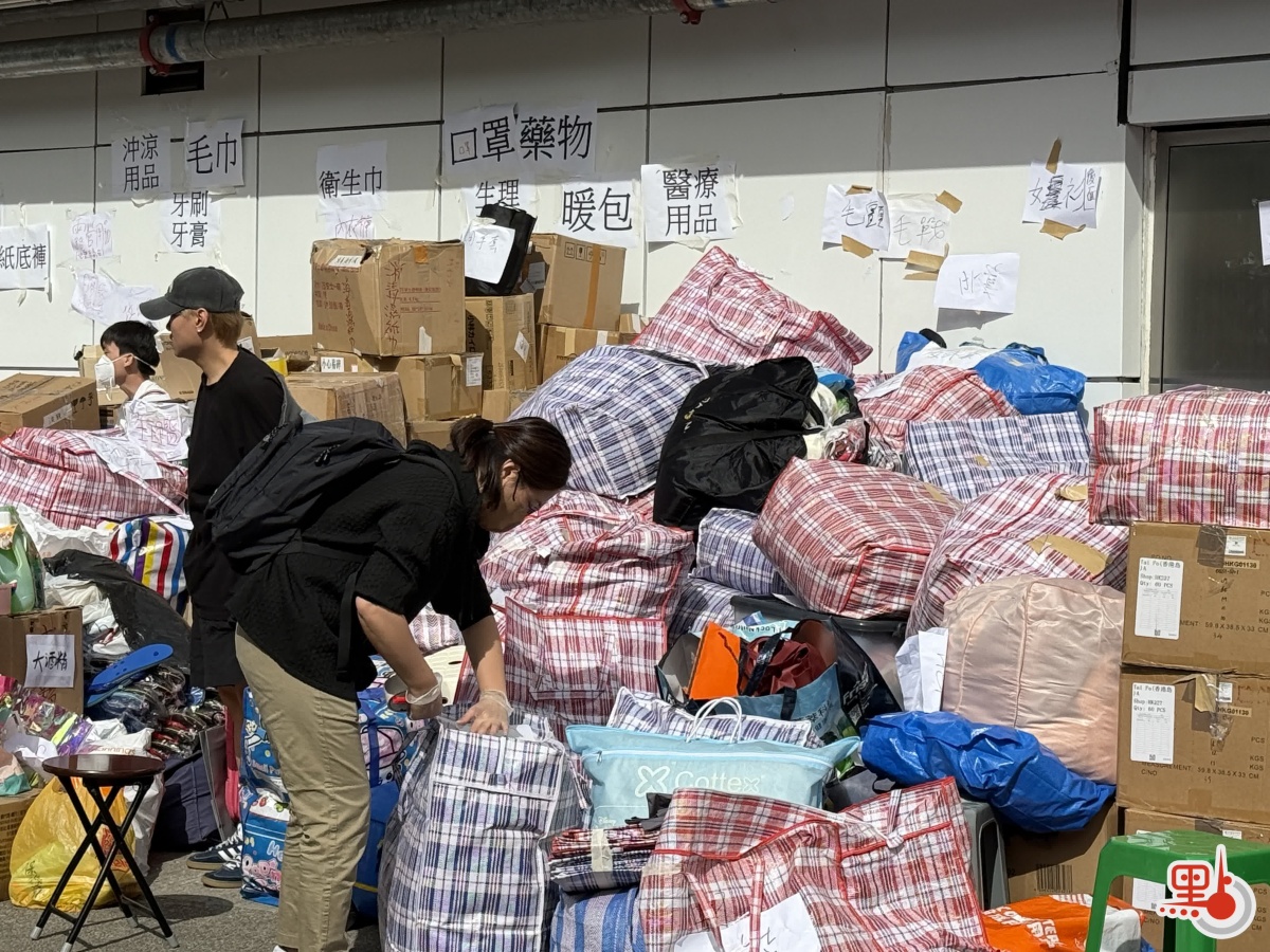 惟該處物資已足夠,鄭小姐打算看看是否有其他地方可以接收物資。該臨時物資站的義工向記者表示,目前正在「清場」,她已聯繫NGO機構查詢是否接受物資。
