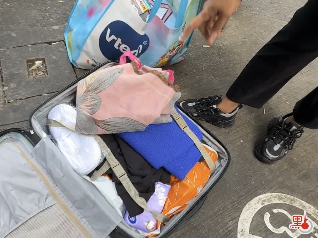 受到此次災情影響,她幾乎一無所有,而臨時物資站的義工為她整理了一個裝滿生活物資的行李箱。記者留意到,這個行李箱內包含衣服、褲子,還有禦寒的圍巾等衣物,還有一些食品,以及止汗劑等生活用品。