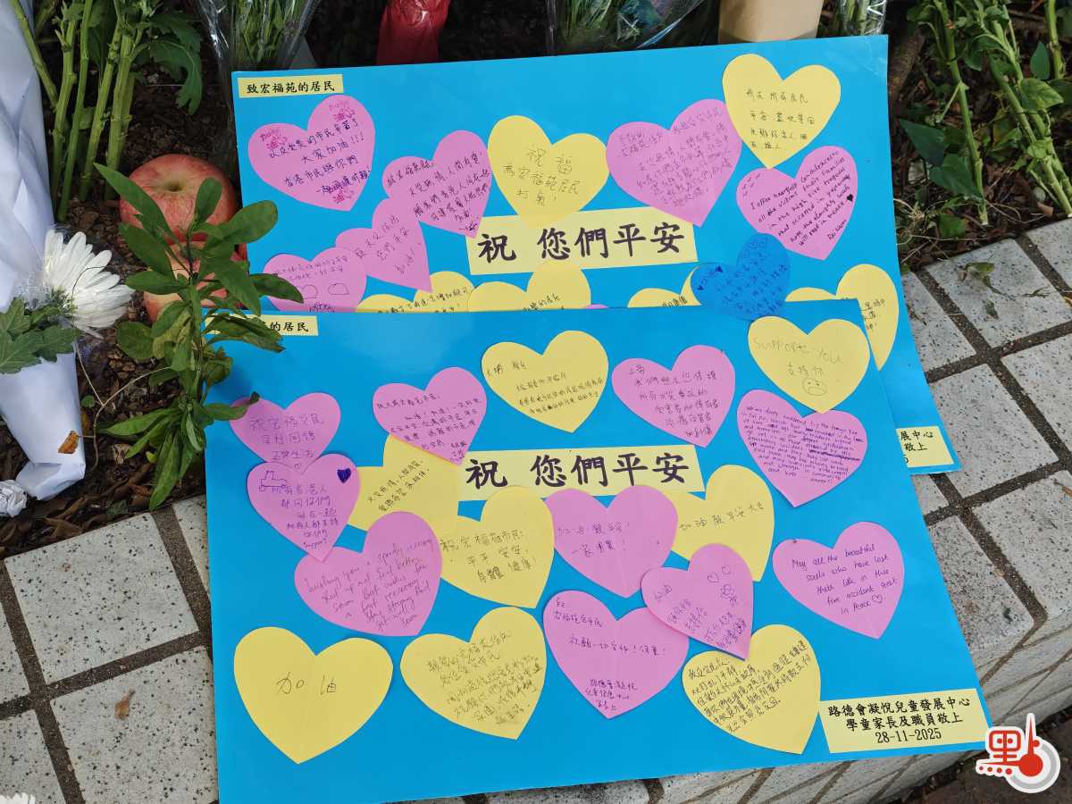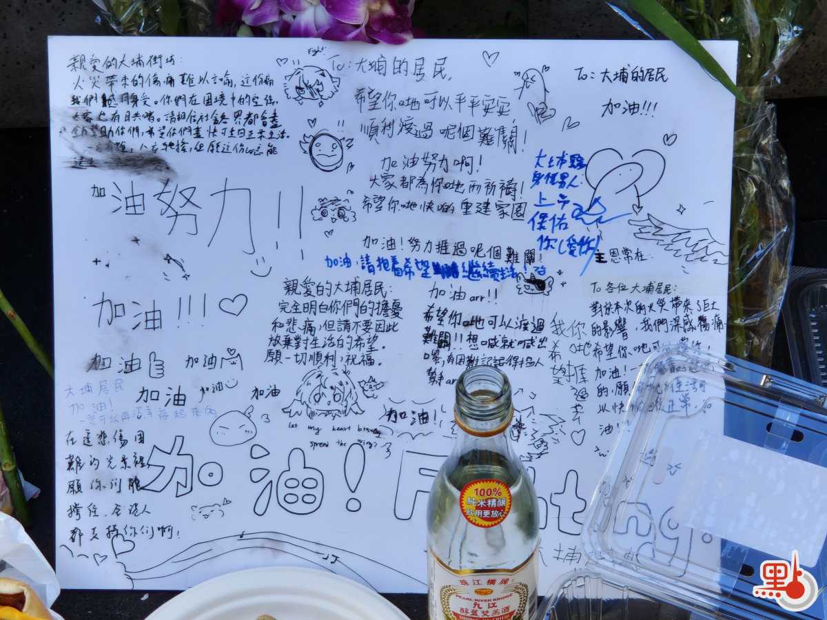 市民留言寫道:「親愛的大埔居民,完全明白你們的擔憂和悲痛,但請不要因此放棄對生活的希望,願一切順利,祝福。」「大家都要加油振作,希望你哋可以快啲渡過呢個傷痛。你哋要好好保重、好好生活。」「加油,請懷抱希望繼續生活!」