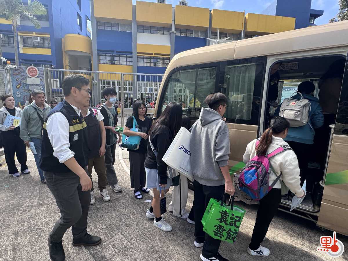 點新聞記者上午12時於馮梁結紀念中學現場所見,居民在入境處工作人員的指引下,有序排隊登記信息,第一批補領證件的受災居民於中午12時15分出發。據了解,市民可補領的證件包括身份證、護照、出生登記、結婚證明書等。