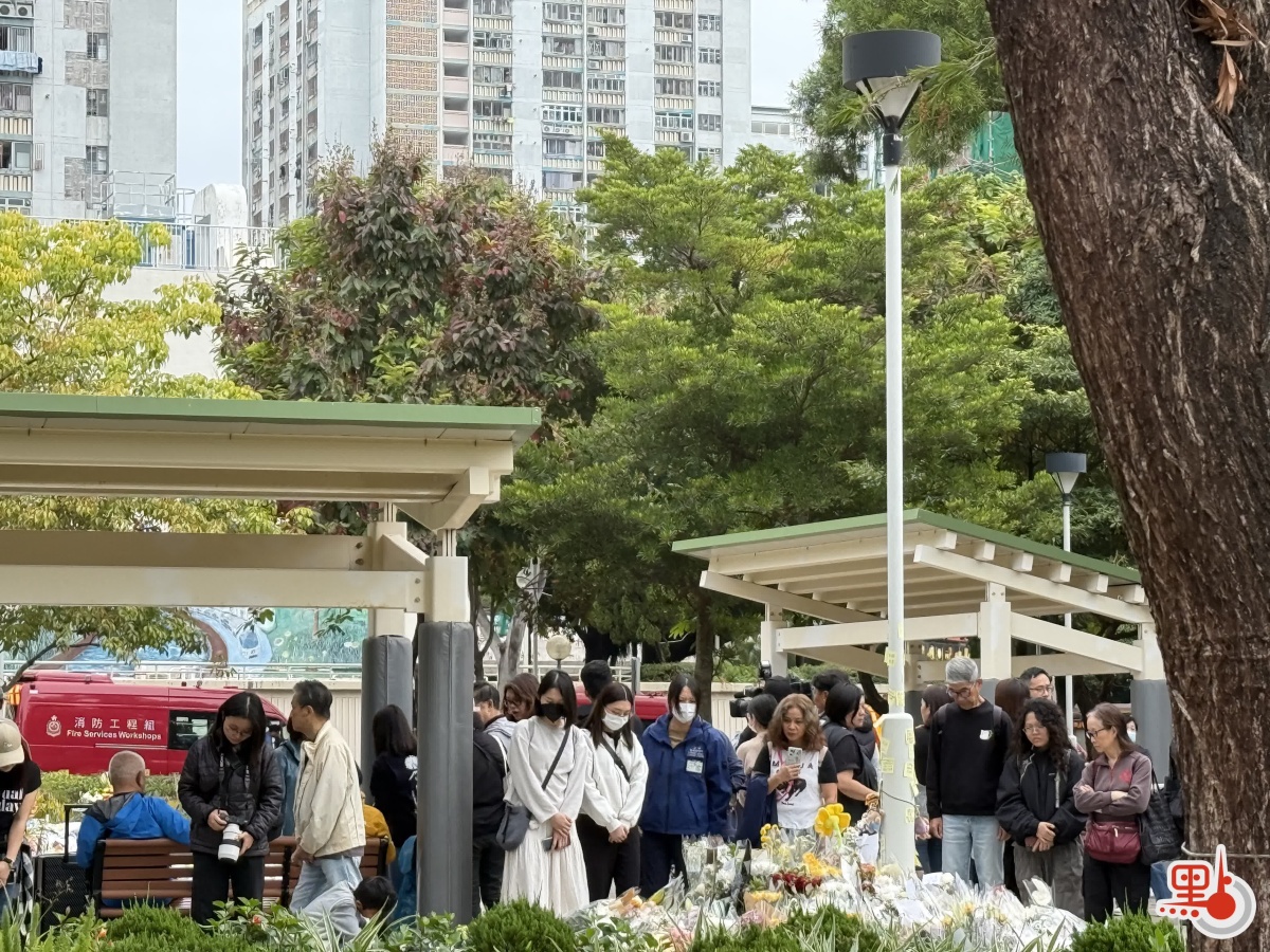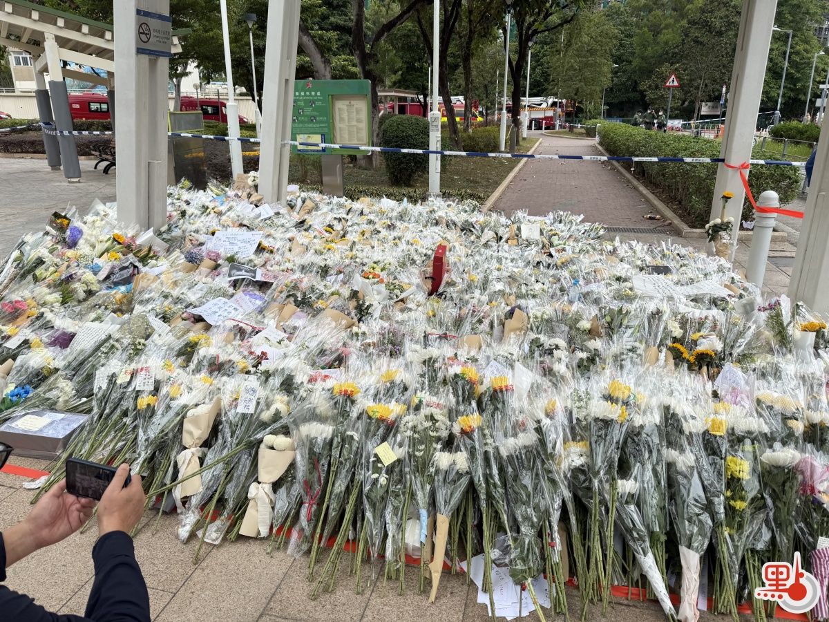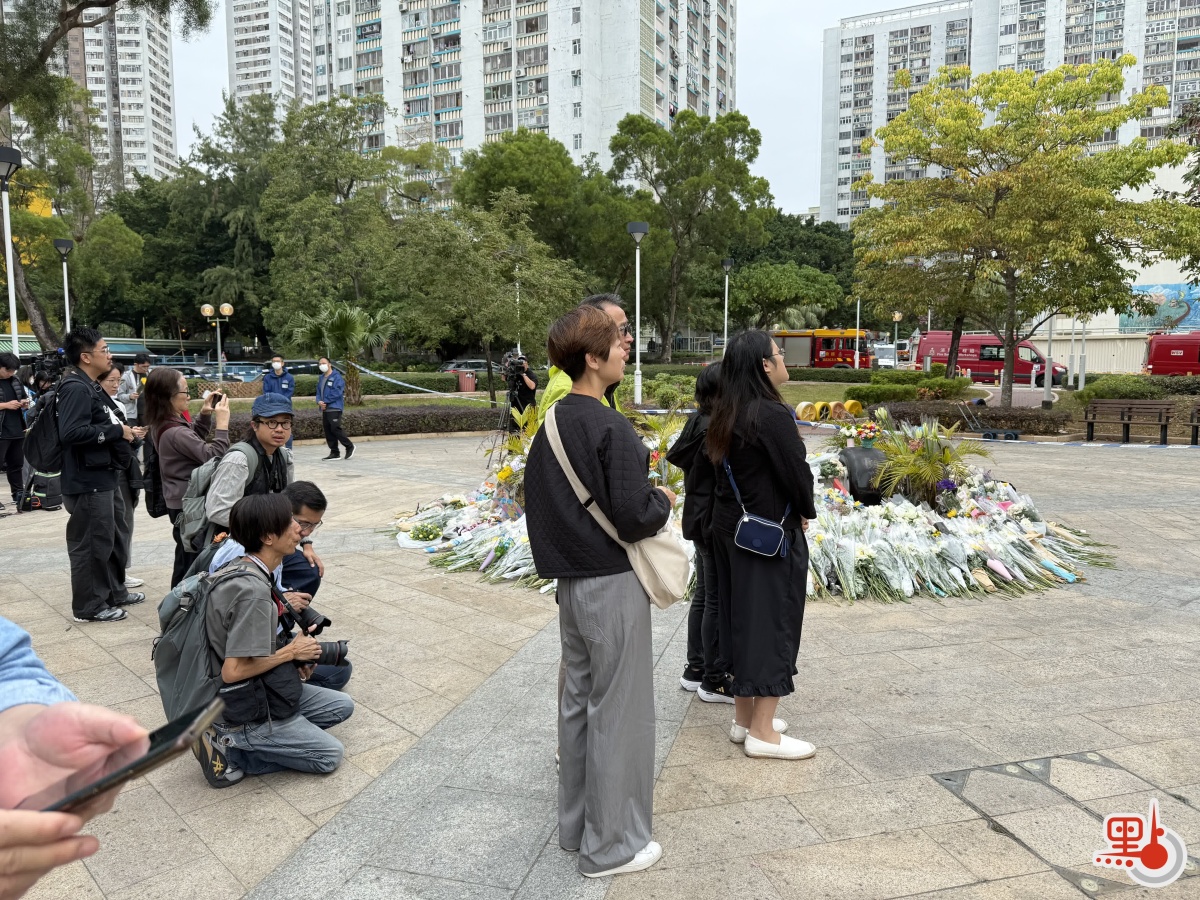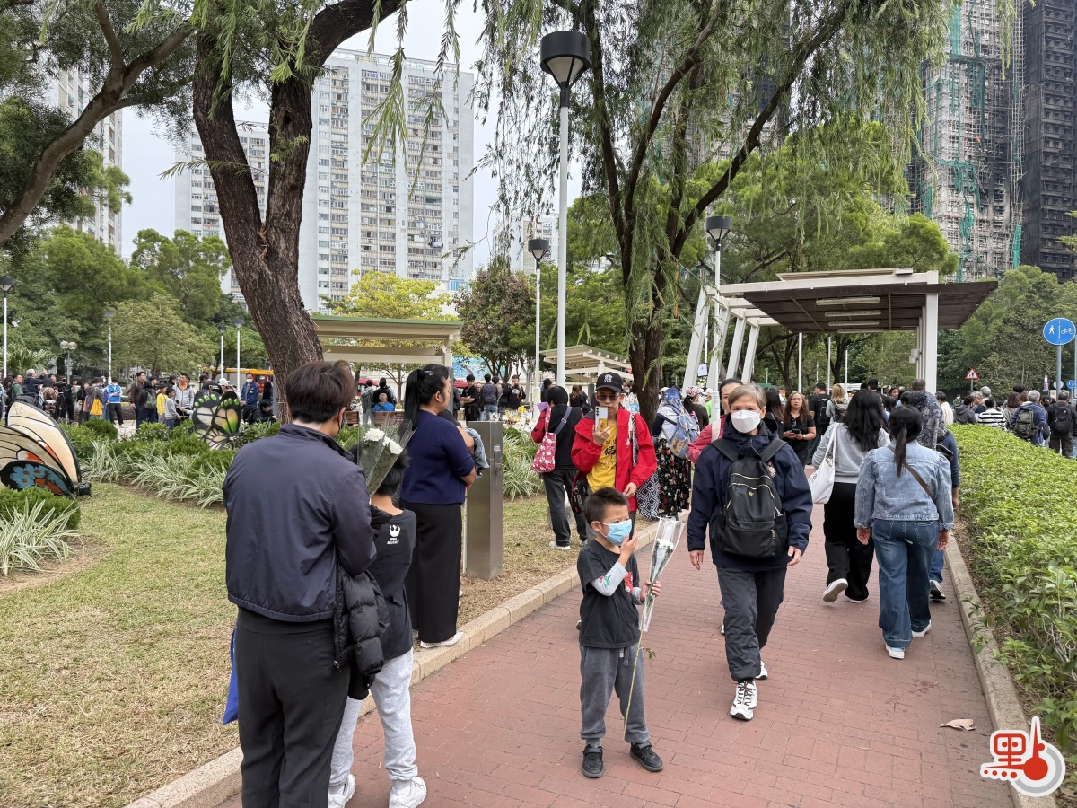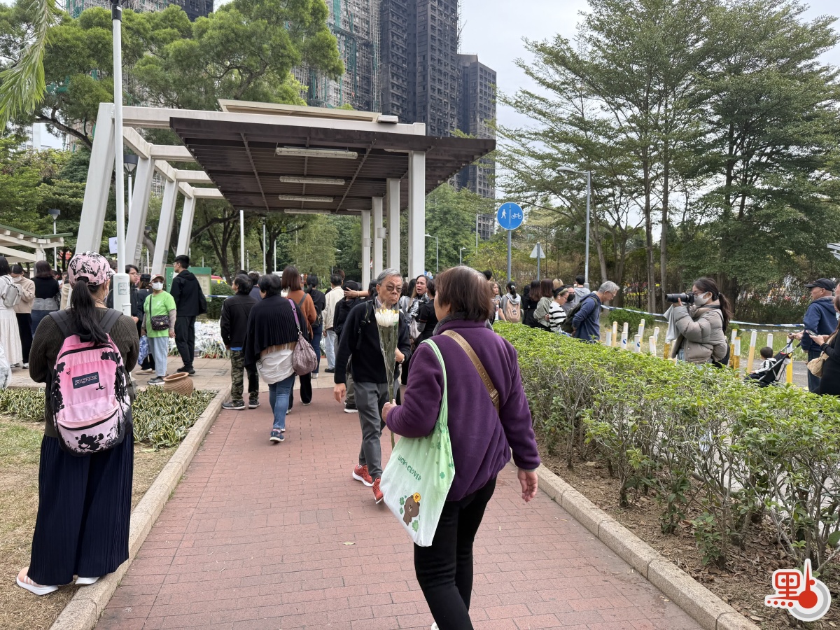 【點新聞報道】大埔宏福苑11月26日下午發生五級大火,造成嚴重死傷。特區政府昨日(29日)在政府總部舉行悼念儀式,沉痛哀悼在大埔宏福苑火災不幸罹難的人士,全港所有政府建築物及設施的國旗及區旗下半旗誌哀,同時不少市民紛紛前往廣福休憩處獻花悼念罹難者。今日(30日)仍有不少市民攜帶鮮花前往宏福苑附近悼念,早上9時30分,點新聞記者看到已有大批市民齊聚宏福苑附近獻花悼念罹難者,還有市民邊走邊落淚。