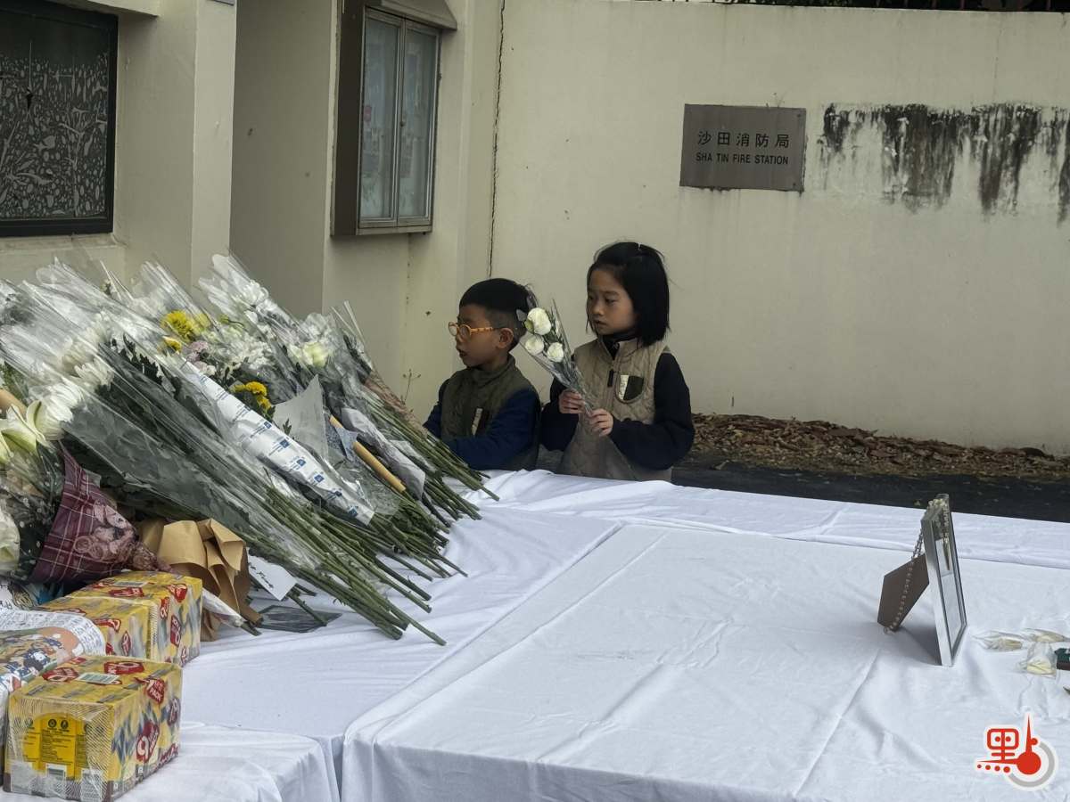 現場不乏有小童在家長的引導下獻花,銘記英雄事跡。有一位小男孩,在獻完花後,拉着爸爸的手走向消防局大門,對正在值班的消防員說「感謝你們去大埔救火」。門內的消防員聽到後,揮手、點頭回應。
