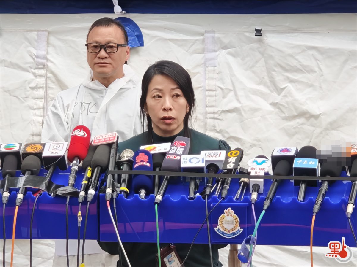 【點新聞報道】今日(30日)下午5時,警務處新界北總區指揮官林敏嫻、警務處傷亡查詢中心主管總警司曾淑賢、警務處災難遇害者辨認組主管鄭嘉俊,聯同房屋署副署長(發展及建築)梁洪偉於大埔廣福公園就早前大埔宏福苑五級火警事件見記者。