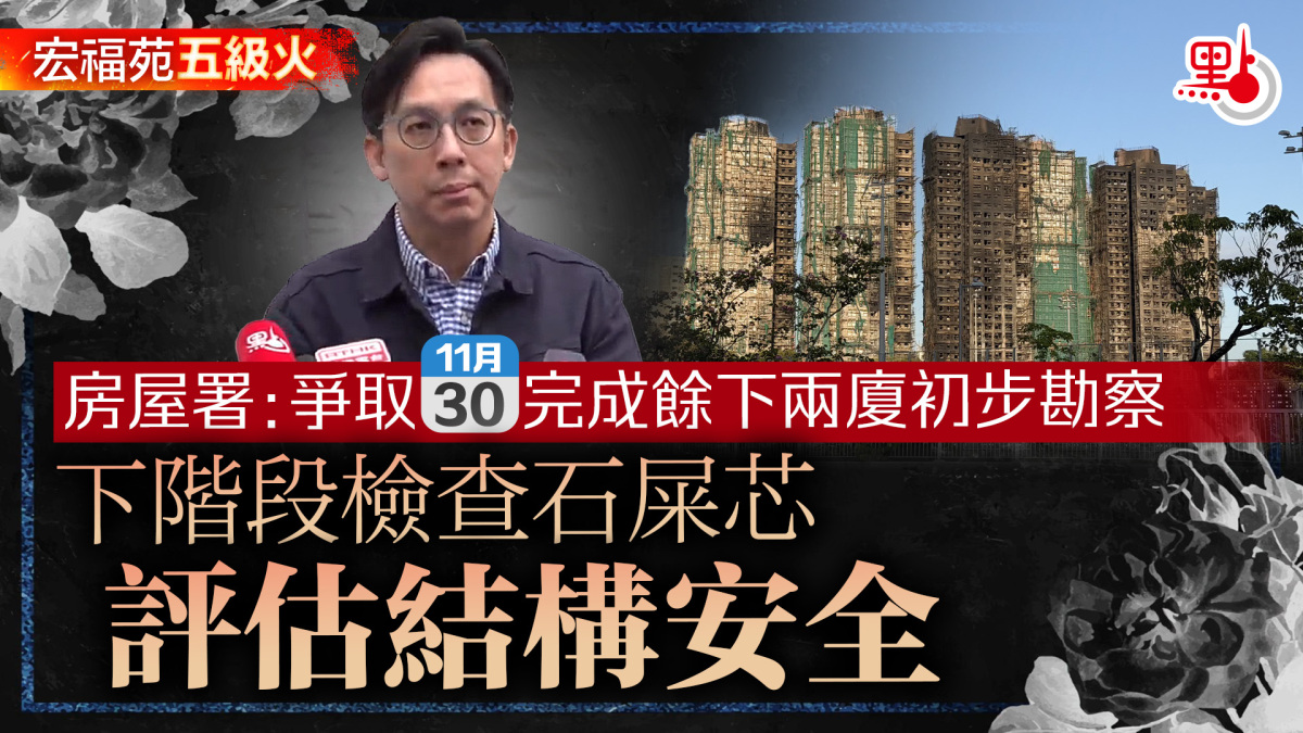 梁洪偉強調,目前的勘察工作主要是為警方及消防人員提供條件,使其能夠即時進行搜證工作,及開展相關的後續行動。之後當局會展開第二階段勘察工作,包括檢查混凝土芯(石屎芯)及評估目前建築物的結構安全性。他表示,目前當局已調撥相關資源,務求盡快完成第二階段的勘察行動。
