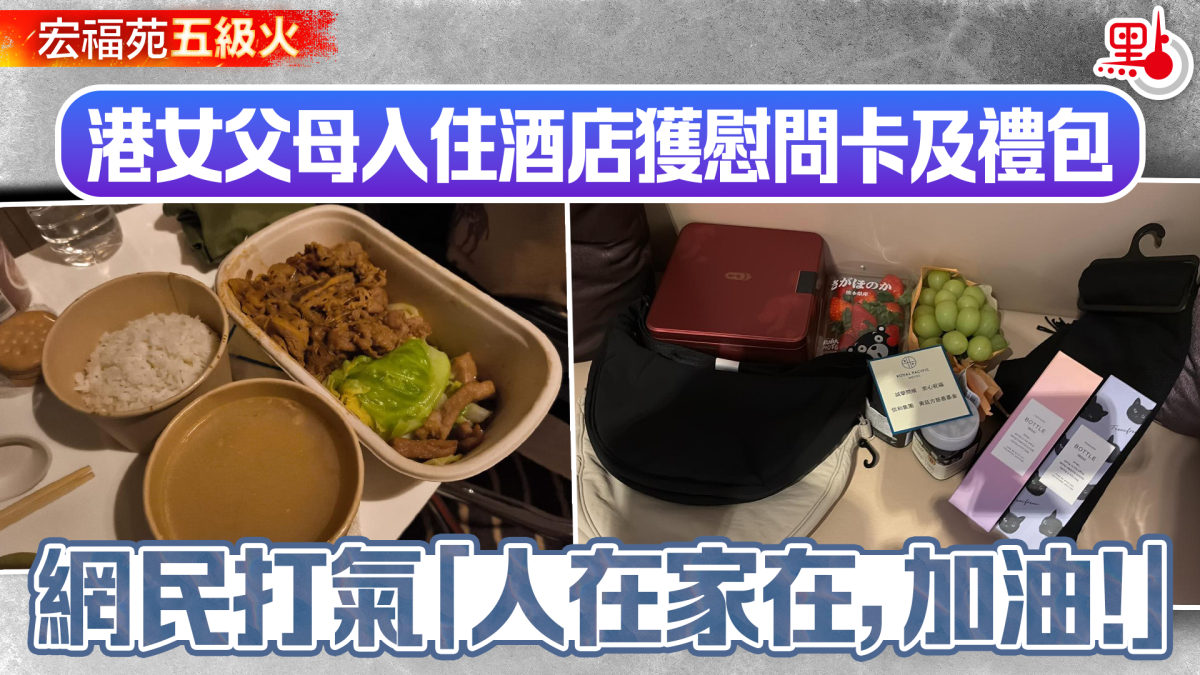 日前有港女於社交平台發文稱,其父母在此次火災中失去養老的房子,但幸好父母事發時不在家所以平安無事,「好彩喺當日媽媽返咗工,爸爸咁啱出咗去,平時喺屋企瞓緊晏覺」。目前港女父母獲安排入住信和集團提供的免費客房已經兩天了,酒店住宿包含免費三餐。甚至入住後酒店還送上問候禮包和慰問卡,港女感嘆「真係好驚喜,喺呢啲時候,覺得好溫暖」。
