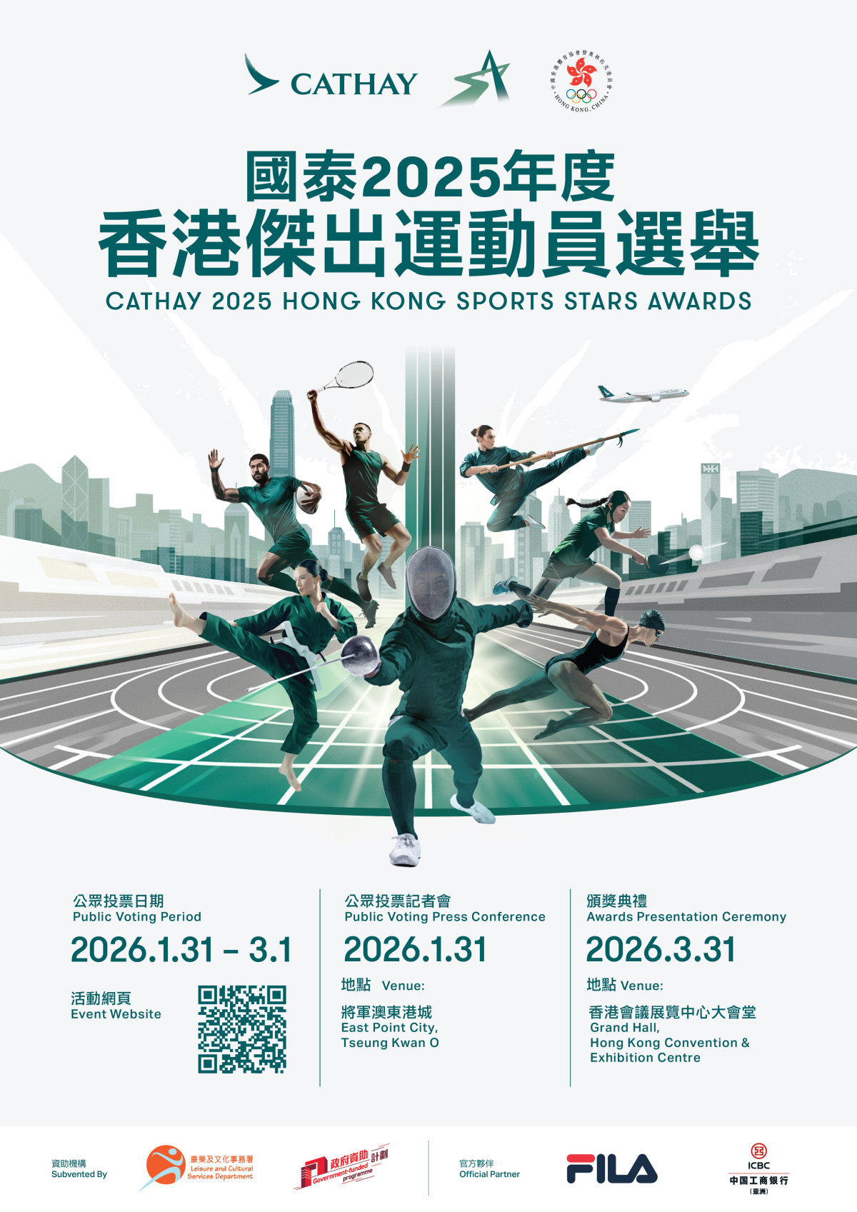 【點新聞報道】由港協暨奧委會主辦的「國泰2025年度香港傑出運動員選舉」今起(12月1日)接受體育總會提名。本年度傑出運動員選舉設4個組別的獎項,包括「香港傑出男運動員」、「香港傑出女運動員」、「香港最佳運動組合」及「香港最佳運動隊伍」。