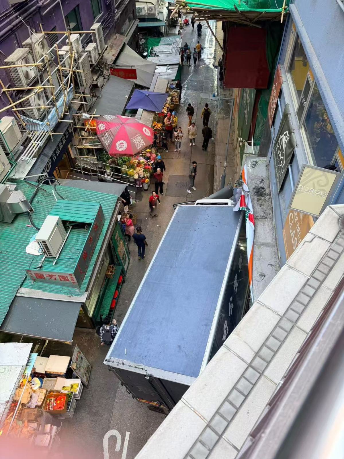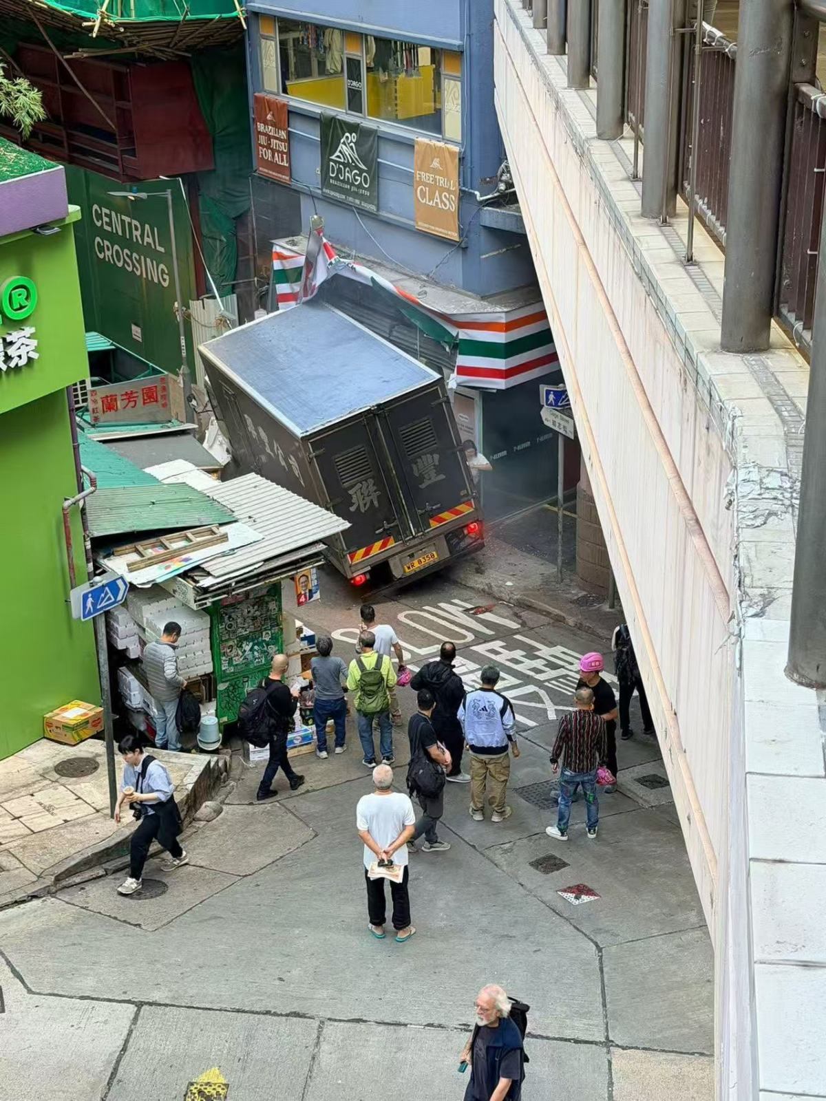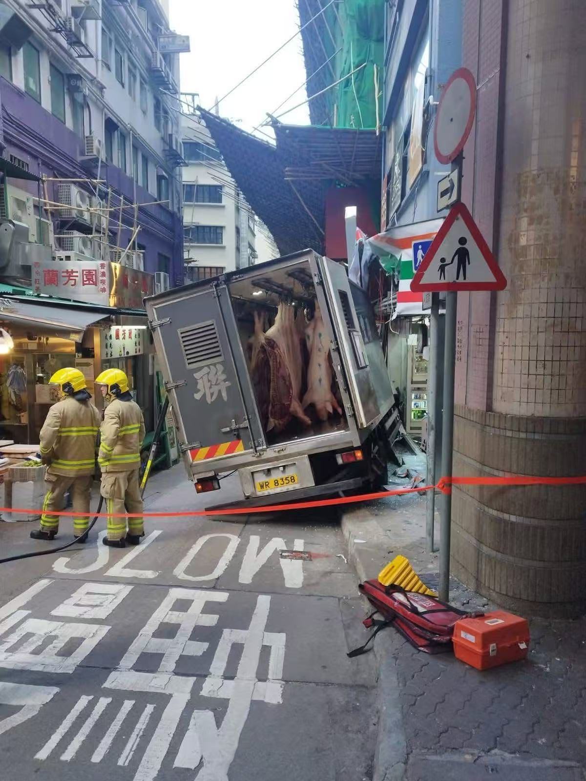 現場消息指,當時運豬車停泊在擺花街結志街交界,有人懷疑落貨後上車時,未有踩實煞車掣。貨車溜前,直剷便利店。事發後貨車一度冒煙,消防到場用工具支撐車身避免翻側,司機在場協助調查。