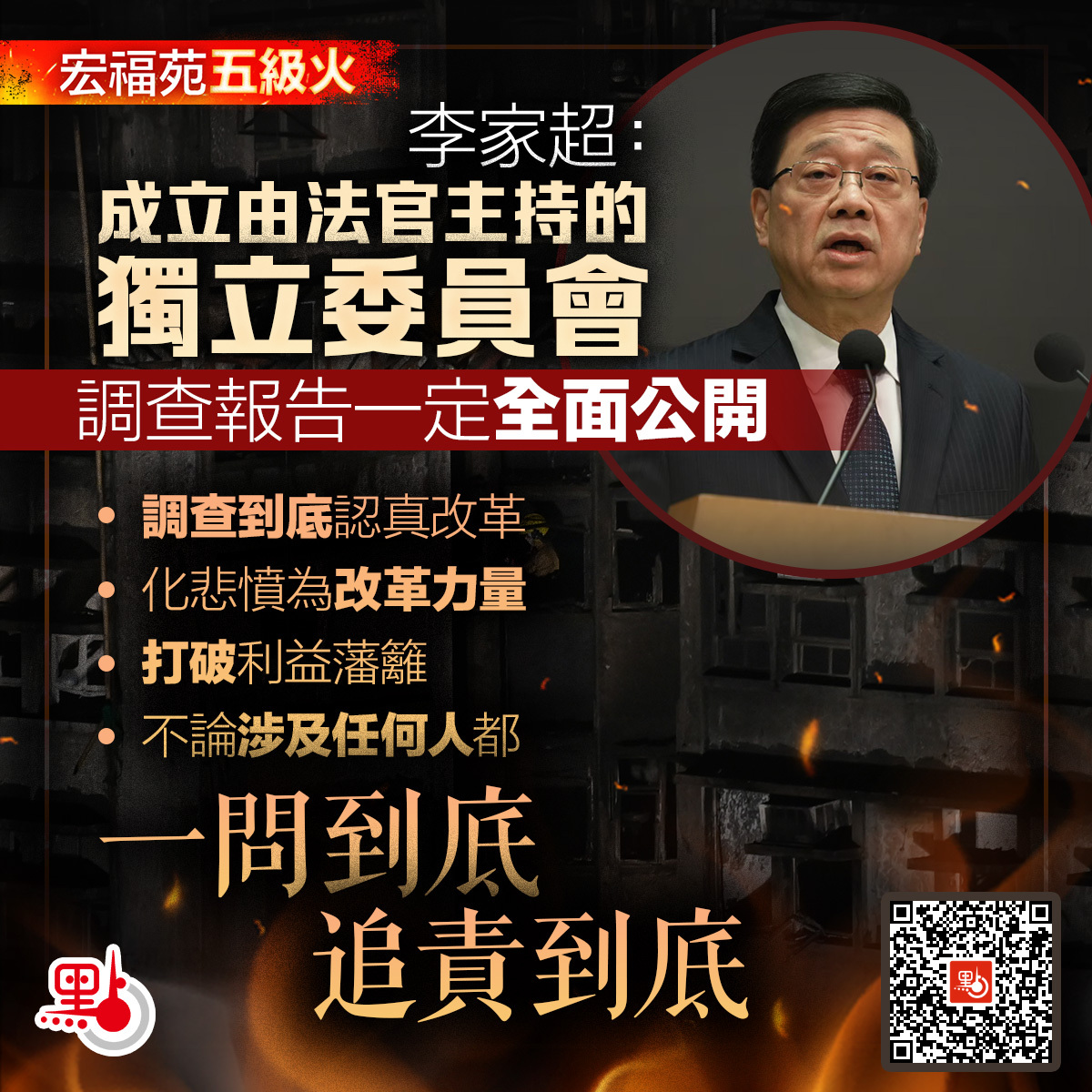 李家超要求,調查到底,認真改革,化悲憤為改革力量,打破利益藩籬,不論涉及任何人,都一問到底,追責到底,讓真相水落石出,讓公義得到伸張,讓逝者安息,讓生者安心。