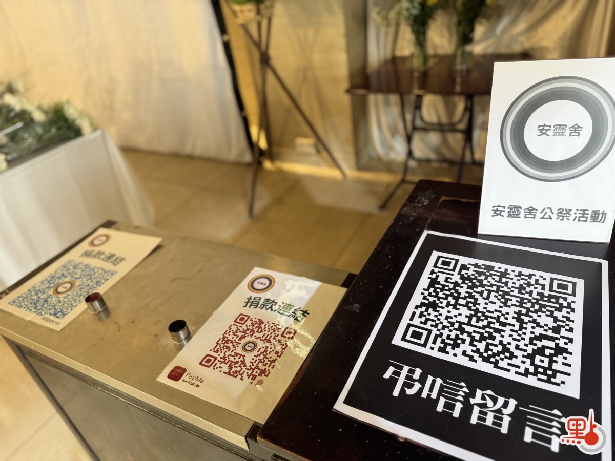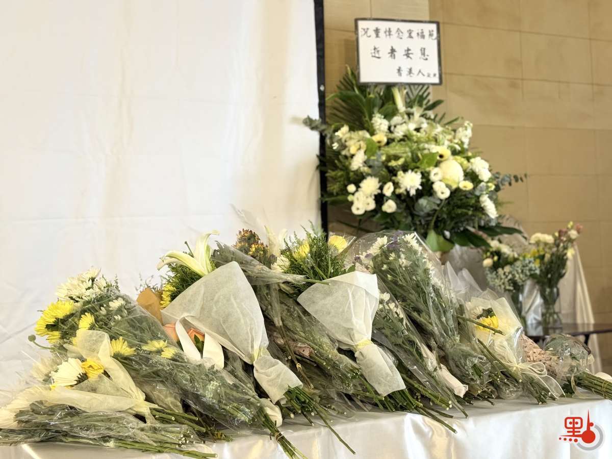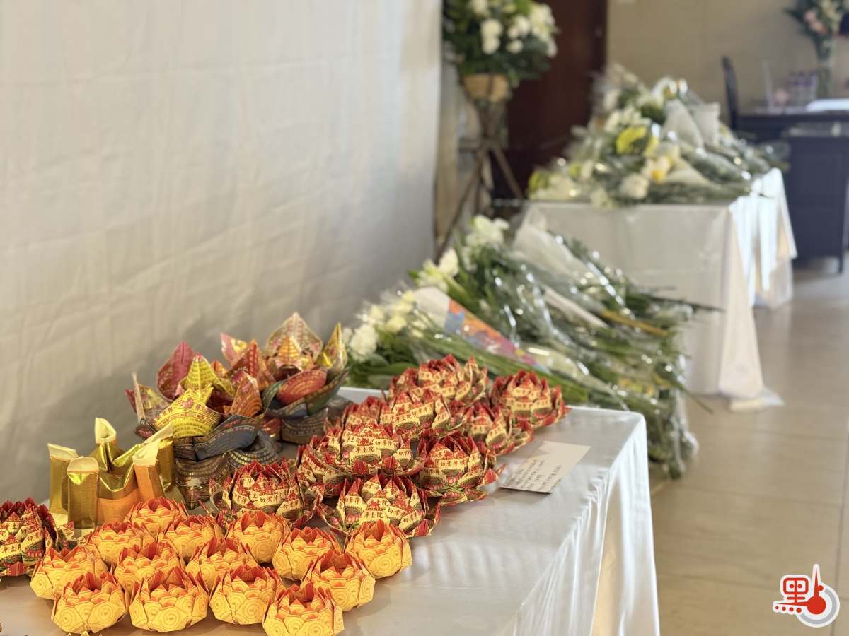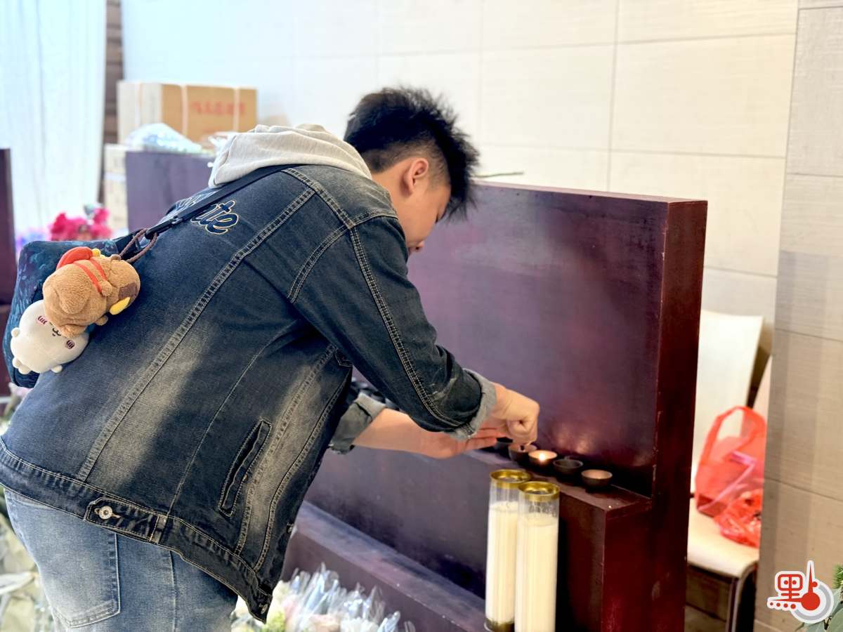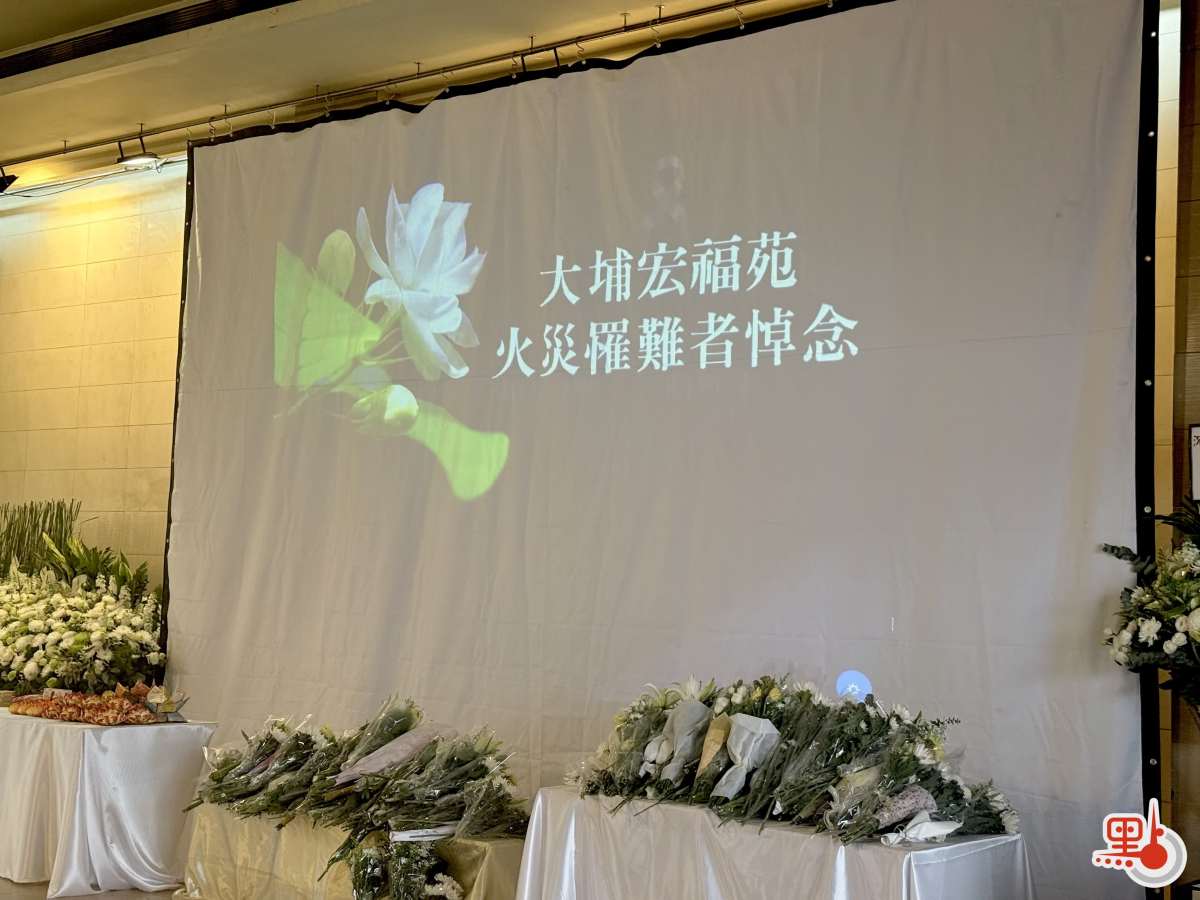 點新聞記者今日上午10時許到場,見九龍殯儀館內外已有多束市民帶來的鮮花,附有「大埔宏福苑火災眾遇難者往生淨土」等弔唁留言,氛圍安靜肅穆。殯儀館內設有鮮花台、祭品台,亦設有弔唁留言及為災民捐款的二維碼,此外還有燭光區供市民點燃蠟燭並默哀,悼念亡者。眾多市民默哀之餘亦自發折疊蓮花、元寶等祭祀用品,以祭奠遇難者。