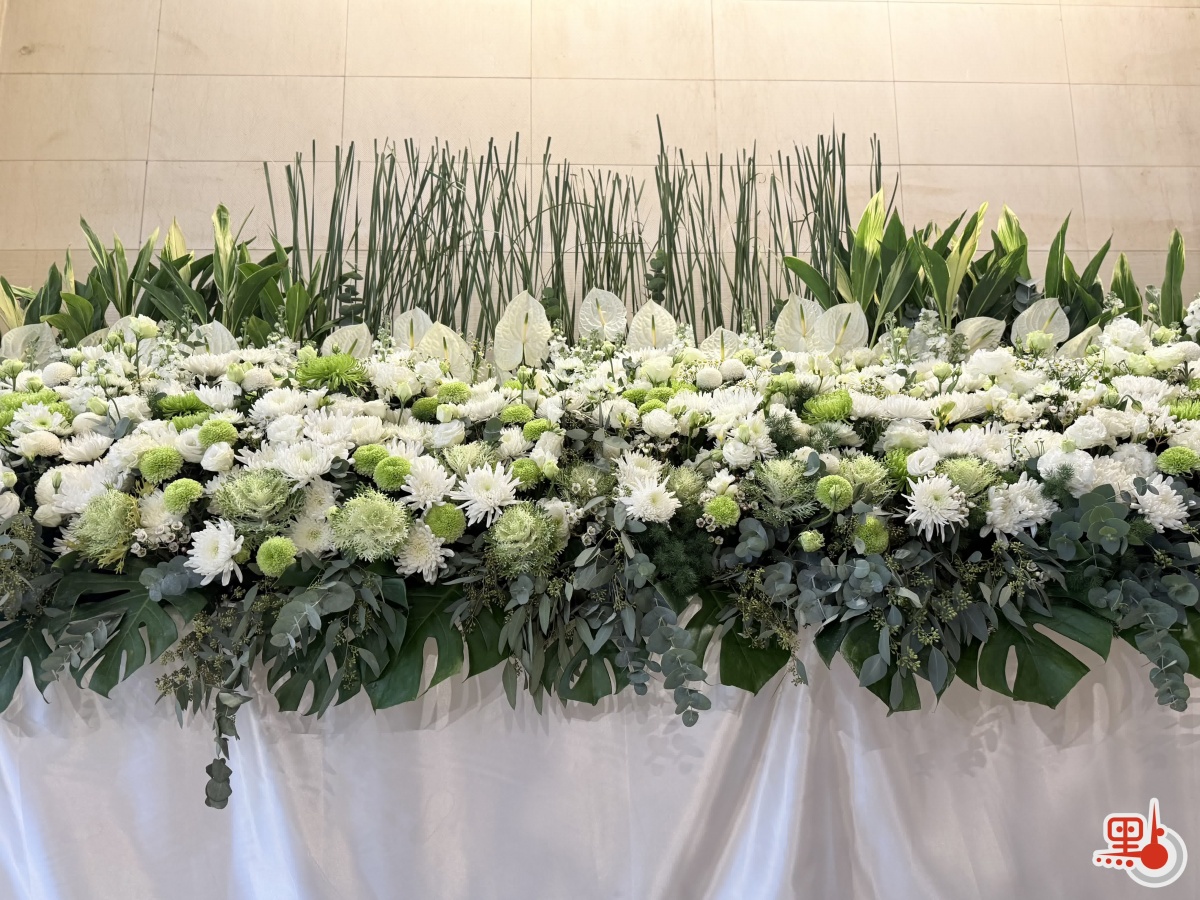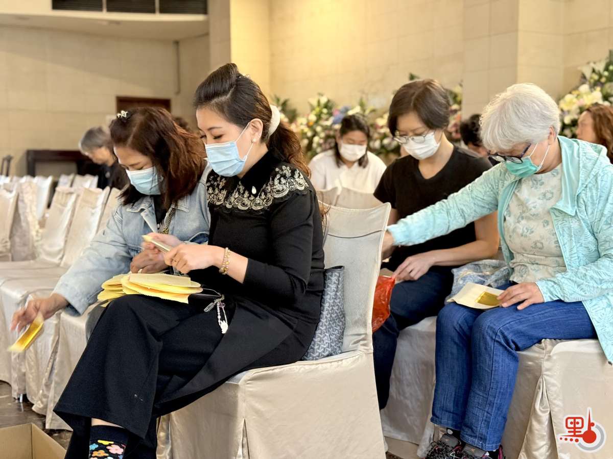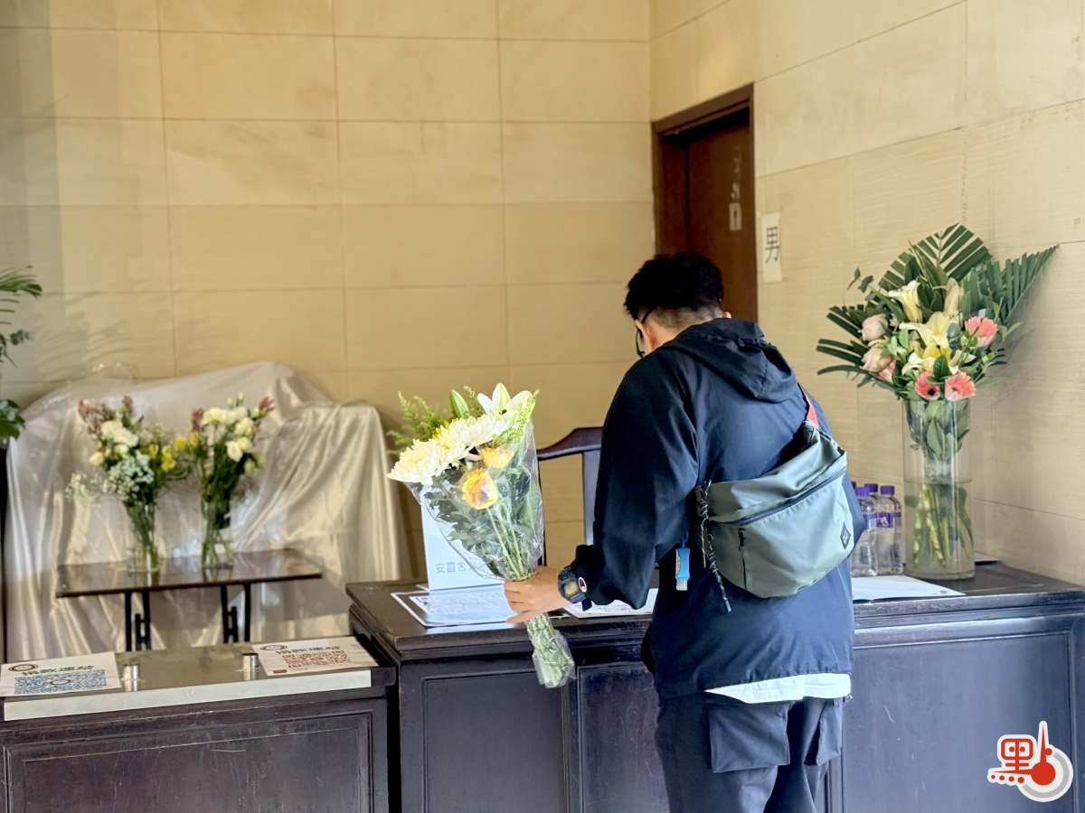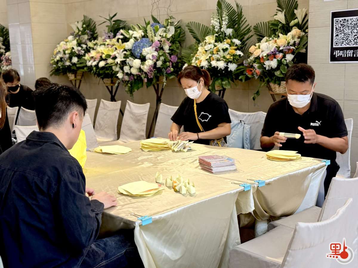 點新聞記者今日上午10時許到場,見九龍殯儀館內外已有多束市民帶來的鮮花,附有「大埔宏福苑火災眾遇難者往生淨土」等弔唁留言,氛圍安靜肅穆。殯儀館內設有鮮花台、祭品台,亦設有弔唁留言及為災民捐款的二維碼,此外還有燭光區供市民點燃蠟燭並默哀,悼念亡者。眾多市民默哀之餘亦自發折疊蓮花、元寶等祭祀用品,以祭奠遇難者。