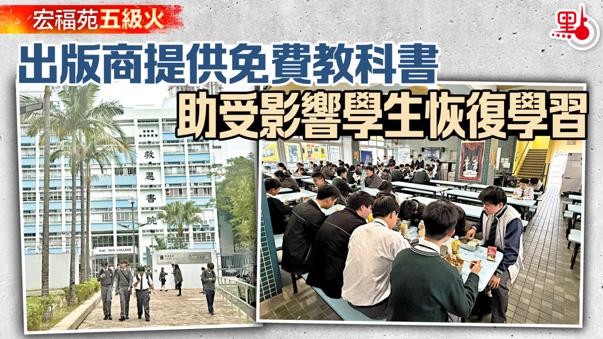 【點新聞報道】受宏福苑大火影響一度停課的大埔區內多間學校復課。特區政府教育局局長蔡若蓮表示,復課情況整體暢順,為提供更適切協助,在教育局支持下,約40間教科書出版社和零售商將為受影響學生免費提供全新的替補教科書,讓他們早日恢復學習,免卻為課本而奔波和擔心。