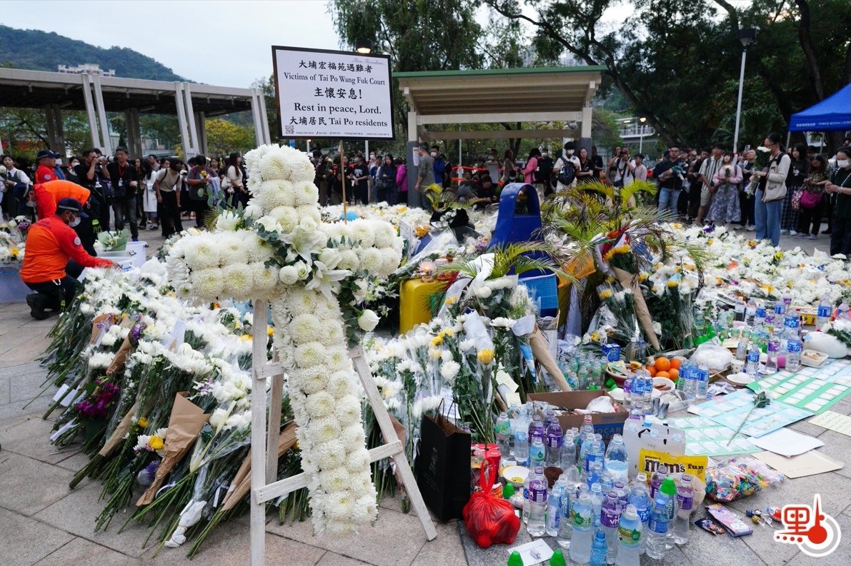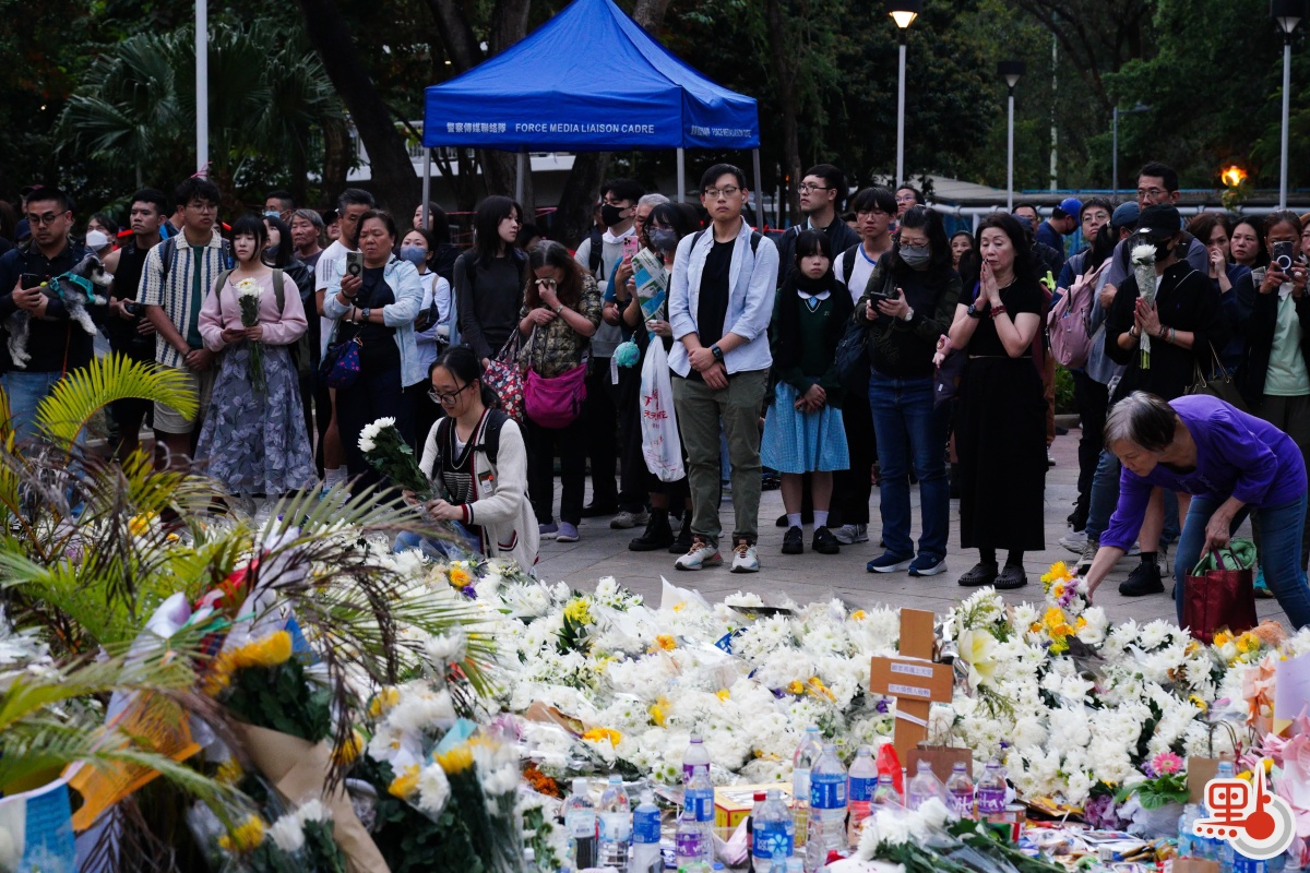 連日來,不少市民亦自發到場,以獻花、默哀、點燃蠟燭、摺疊祭祀用品等方式,悼念火災中的逝者。