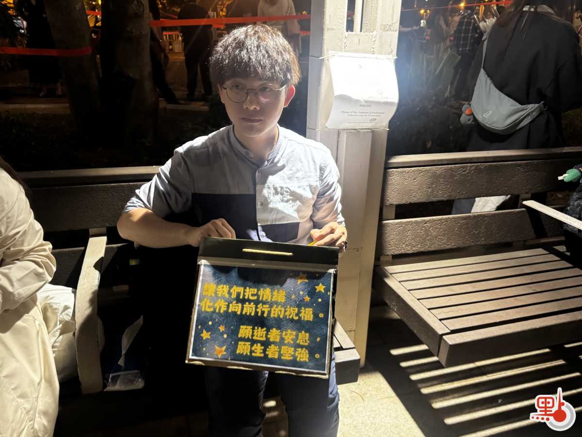 夜漸深,人未散。花靜靜開放,心意卡上墨跡未乾。市民們用自己的方式,陪逝者走過這第七天的夜。