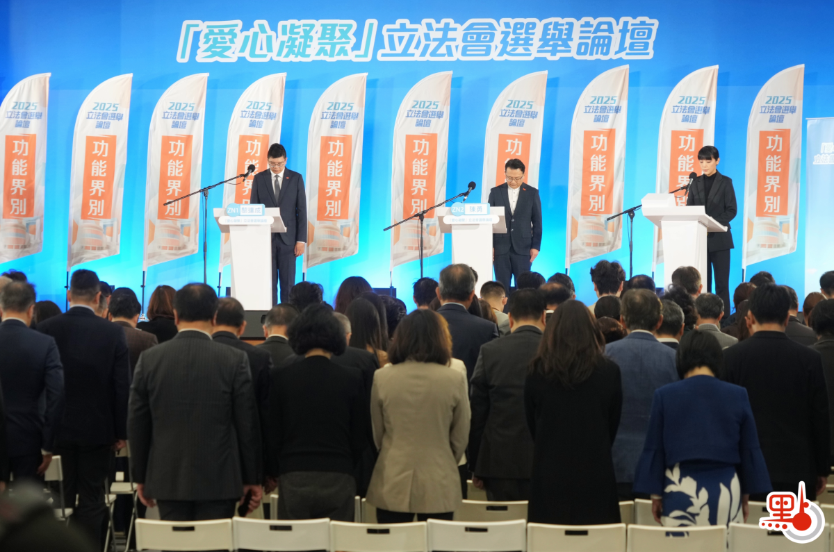 【點新聞報道】特區政府於今日(12月3日)和周四(12月4日)恢復舉辦選舉論壇。因應現時的情況,論壇現名為「愛心凝聚」立法會選舉論壇。今日上午舉行功能界別-全國人大、全國政協及有關全國性團體代表界論壇,下午舉行功能界別-保險界論壇和功能界別-飲食界論壇;晚上則舉行功能界別-教育界論壇。論壇今早正式開始前,全場起立為宏福苑火災罹難者默哀一分鐘,並取消了助選團的打氣環節,整體氣氛莊重肅穆。