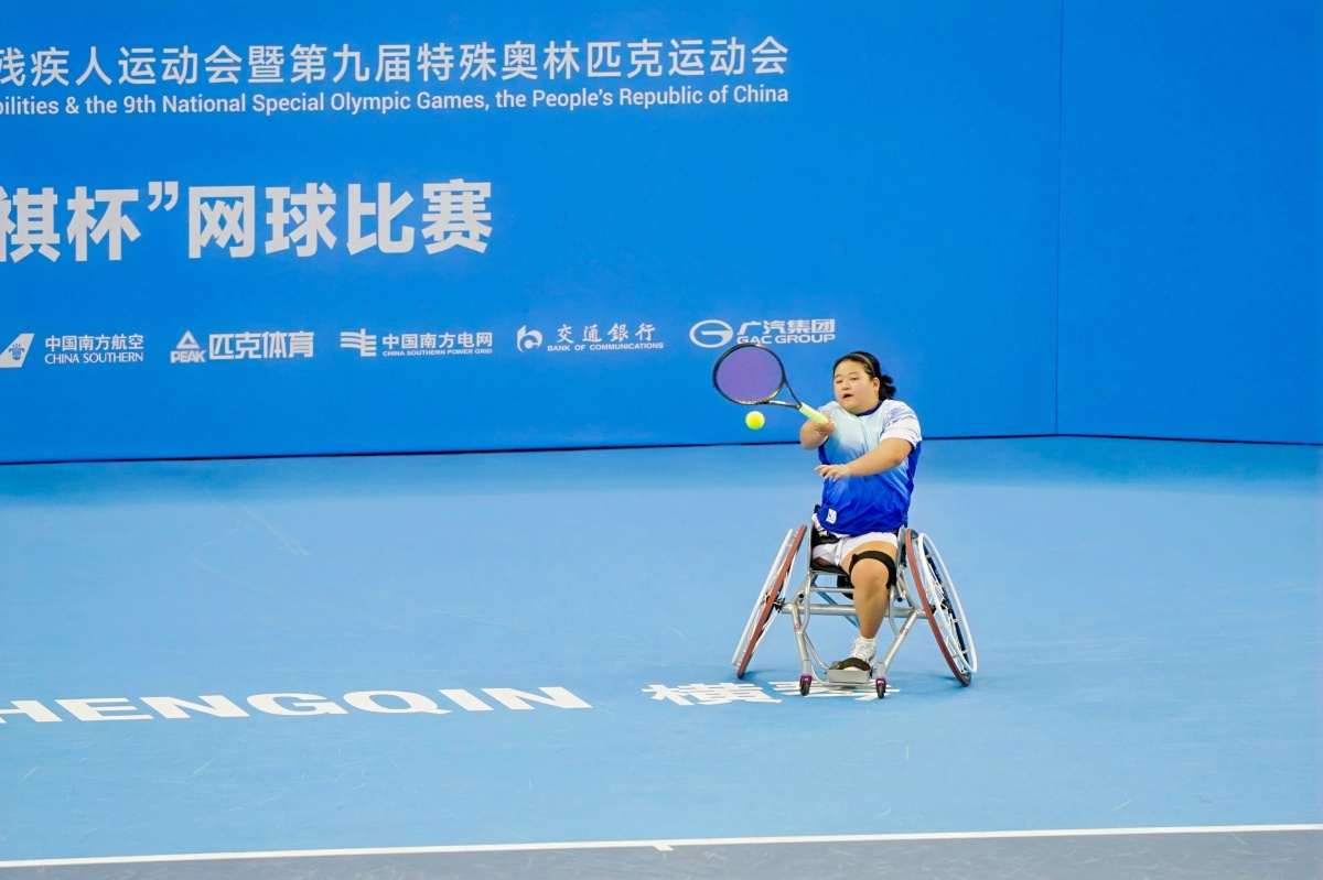 【點新聞報道】全國第十二屆殘疾人運動會暨第九屆特殊奧林匹克運動會(簡稱「殘特奧會」)網球比賽今天(3日)在橫琴國際網球中心進行。在輪椅組女單決賽中,四川選手王紫瑩以0∶4、4∶1、4∶2的比分逆轉廣東選手黃金鏈,成功奪得冠軍。這也是繼女團之後,王紫瑩在本次殘特奧會奪得的第二枚金牌。
