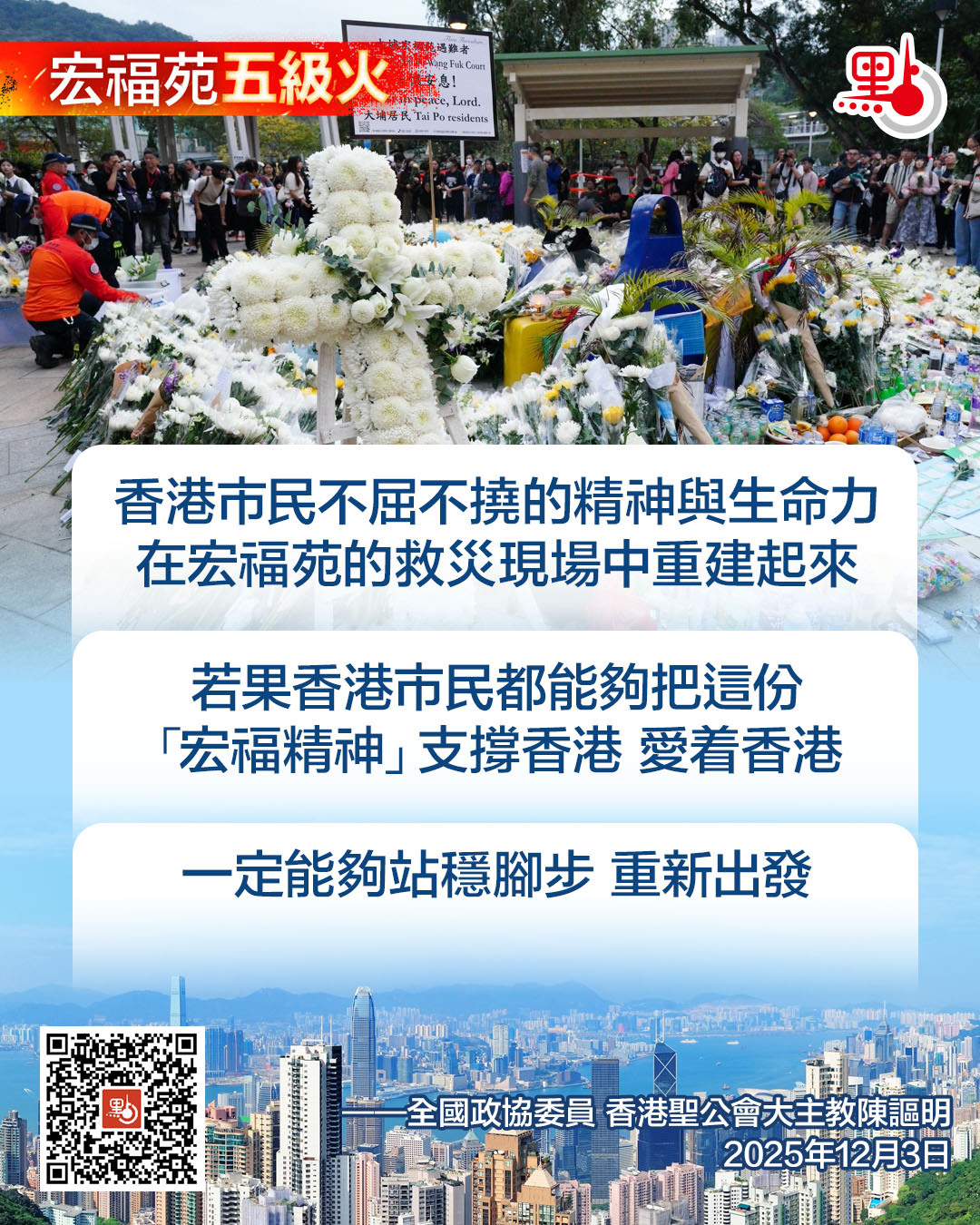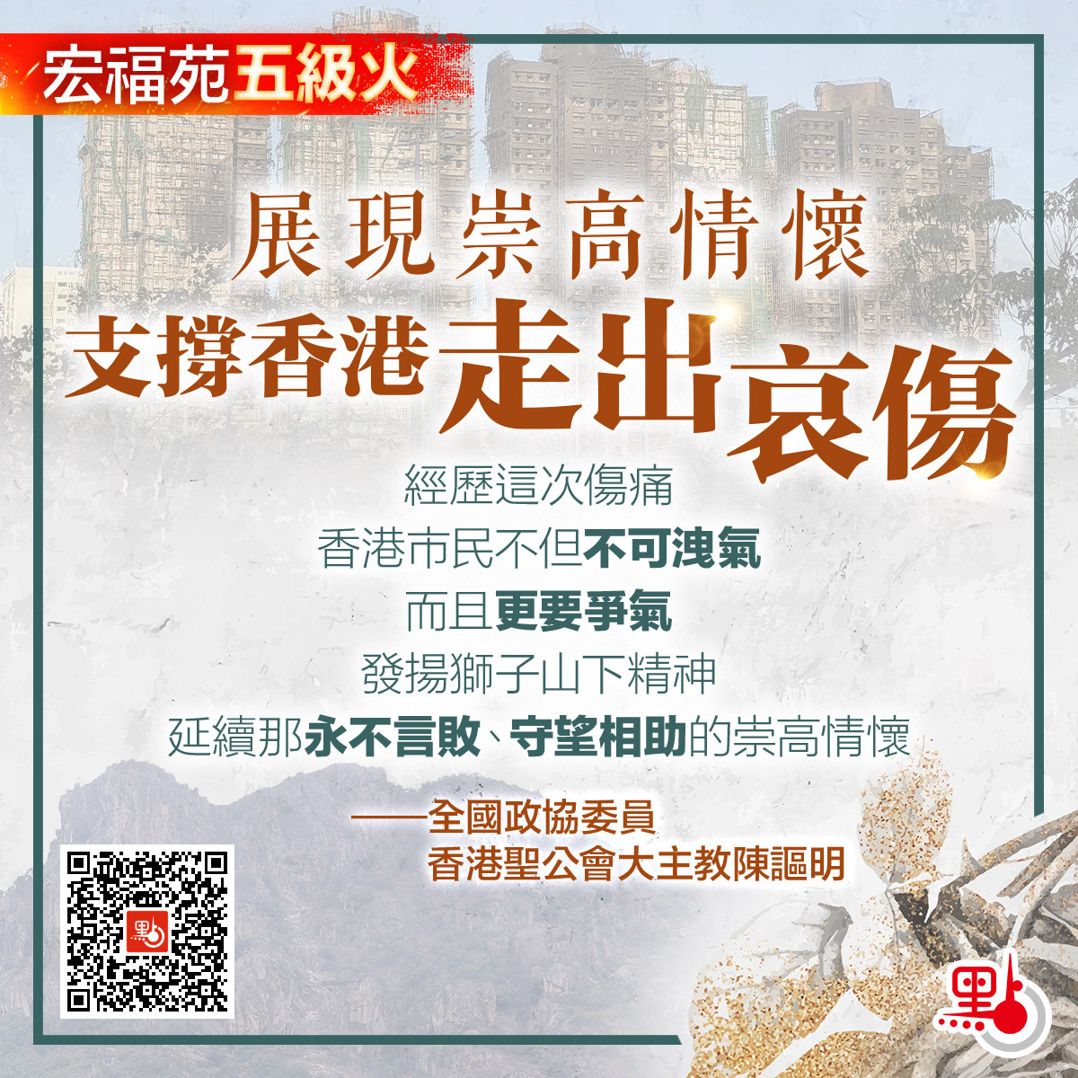 香港市民不屈不撓的精神與生命力,在宏福苑的救災現場中重建起來。筆者深信,若果香港市民都能夠把這份「宏福精神」支撐香港,愛着香港,一定能夠站穩腳步、重新出發。
