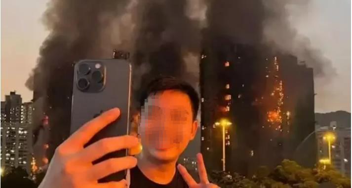 此外,網上圖片亦顯示,陳早前曾在大埔宏福苑火災現場自拍,大笑兼舉起勝利手勢,明顯是利用災難傷亡來博取眼球的卑劣無恥行為,反映陳喪心病狂,嚴重缺乏同理心。