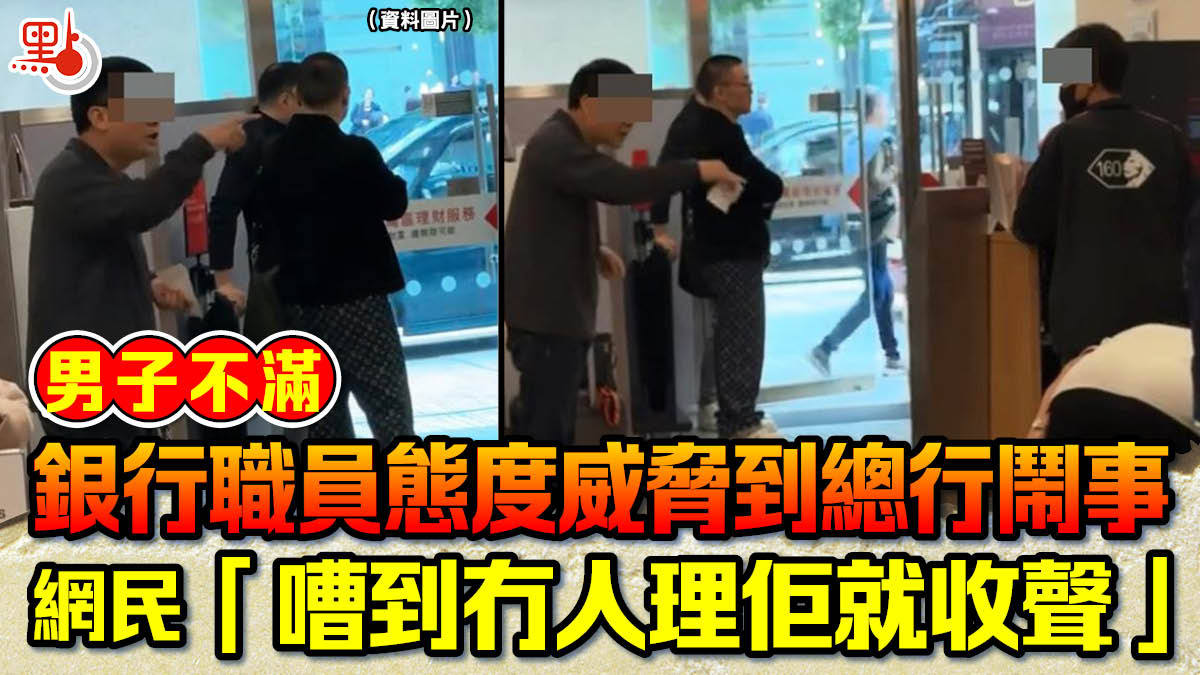 【點新聞報道】網上流傳一段影片,指一名男子到滙豐銀行中環分行要求銀行詢問處男職員為他「激活」網上銀行戶口某功能,由於男職員正忙着處理3至4名客戶,便指示該名男子自行看銀行內貼上的教學。男子聞言就開始發爛,不斷指罵職員,更聲言「香港不要像你這樣的人,如果每個人都像你這樣,那香港還有未來嗎?」,並聲稱若銀行不「處理」該名職員,自己就會跑到總行鬧事。