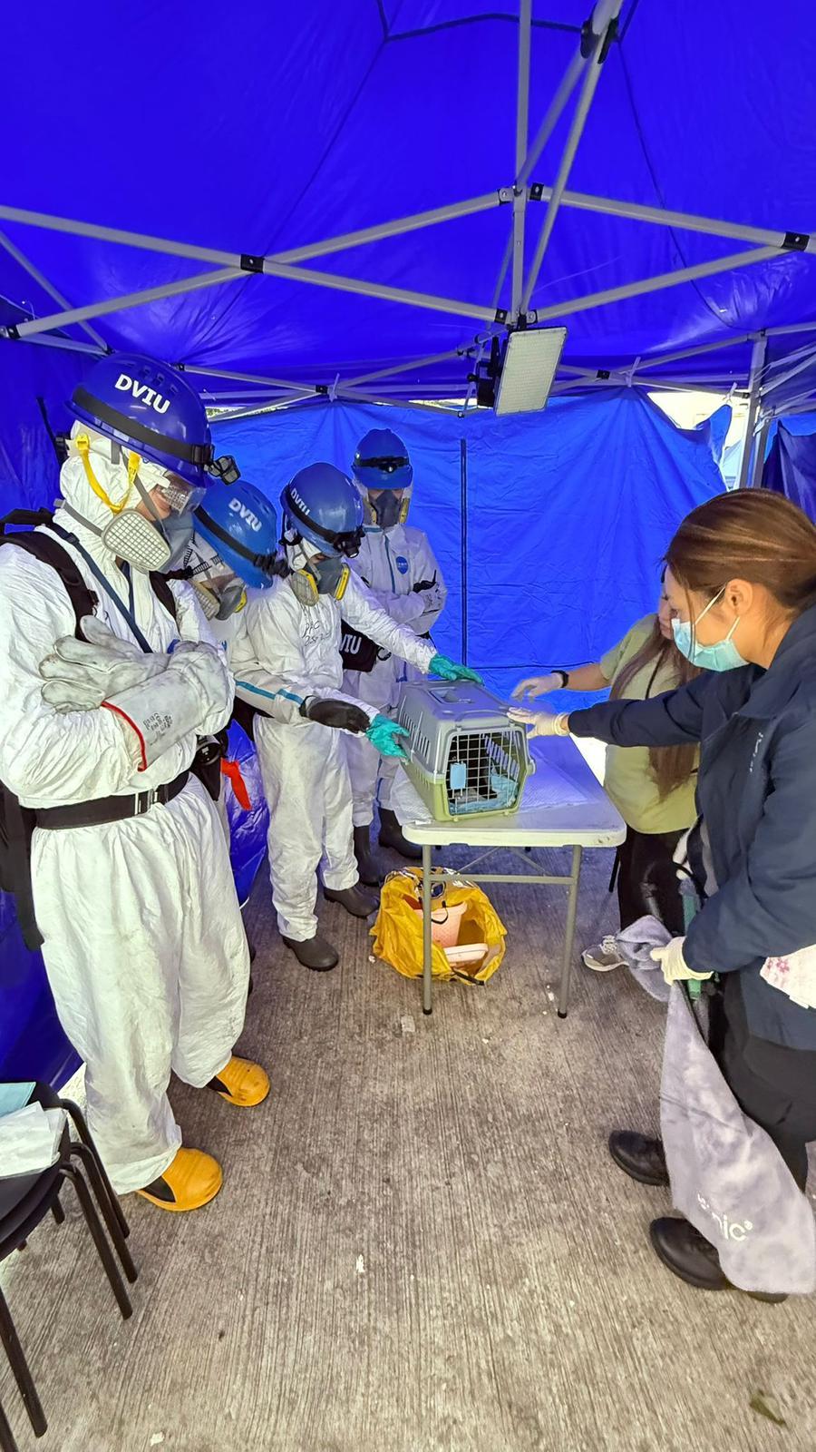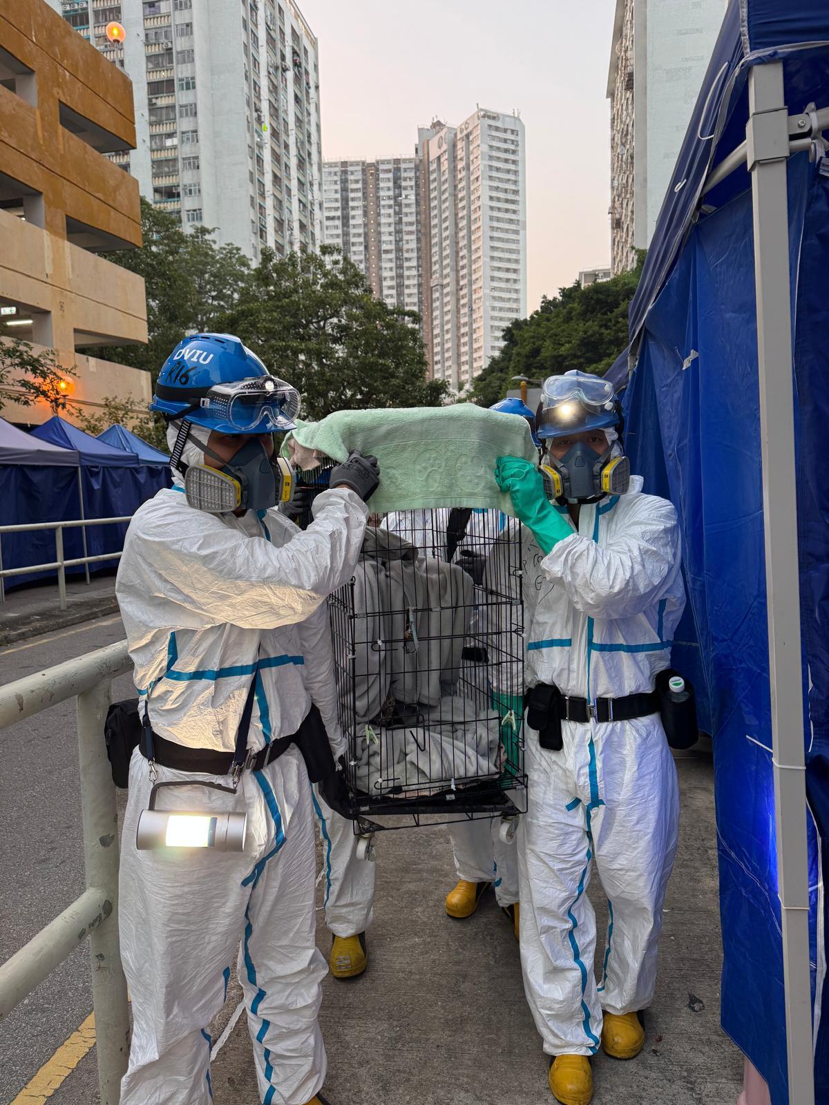 【點新聞報道】大埔宏福苑11月26日發生五級火,造成嚴重人員傷亡,同時有大量寵物下落未明。警方表示,昨日(3日)完成大廈內部階段性搜索工作後,今日(4日)在準備展開大廈外部搜索工作的同時,安排人手進入宏福苑內部,成功於多個單位內尋獲多隻生還動物。