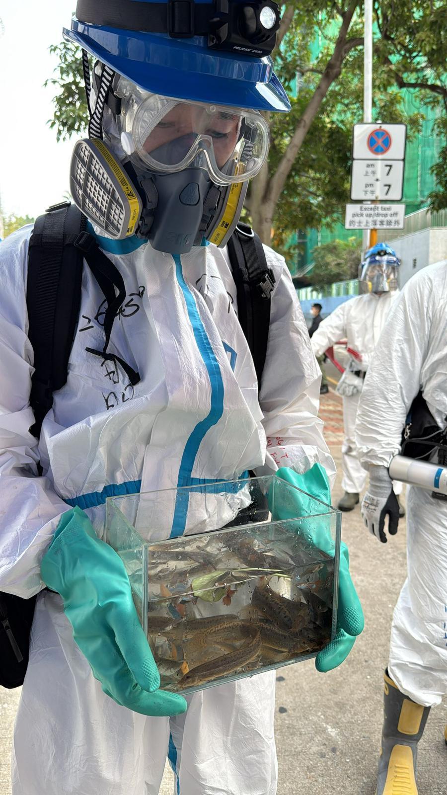 警方災難遇害者辨認組(DVIU)接獲愛護動物協會轉介市民求助後,今日共動員104名人員,進入宏福苑內共78個單位,為可能受困的生還動物進行全面搜索。繼早前救出3隻貓、2隻龜及多條寵物魚後,事發至今第8日,警員在大廈多處再尋回2隻貓、4隻龜、1隻蜥蜴及80多條寵物魚。同時亦發現6隻貓、4隻兔、7隻龜、2隻青蛙及多條寵物魚的遺體,並已全部交由愛協處理。