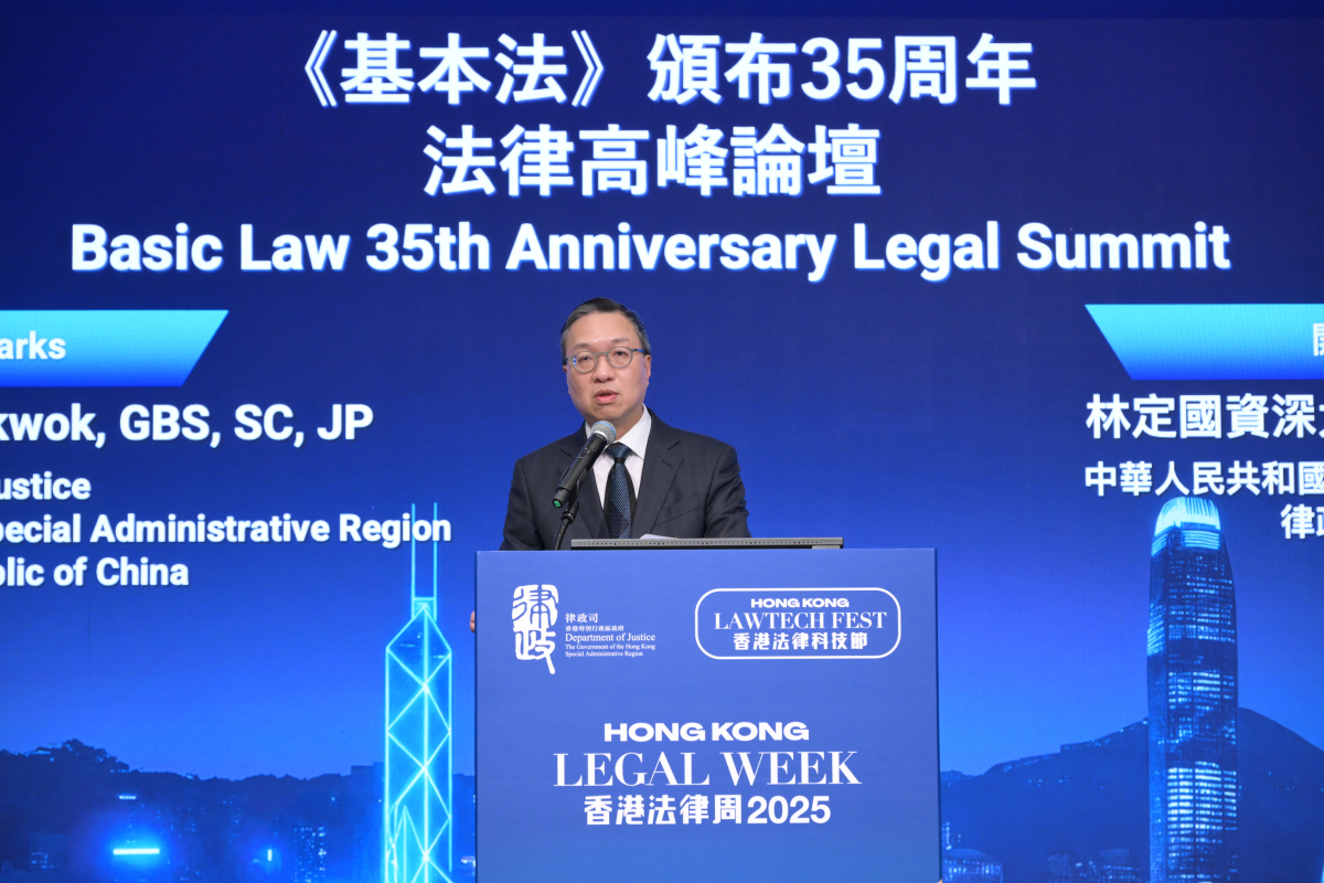 【點新聞報道】由律政司舉辦的「香港法律周2025」基本法頒布35周年法律高峰論壇今日(4日)開幕。律政司司長林定國出席論壇並致辭時強調,「一國兩制」是香港保持長期繁榮穩定的最佳制度安排。