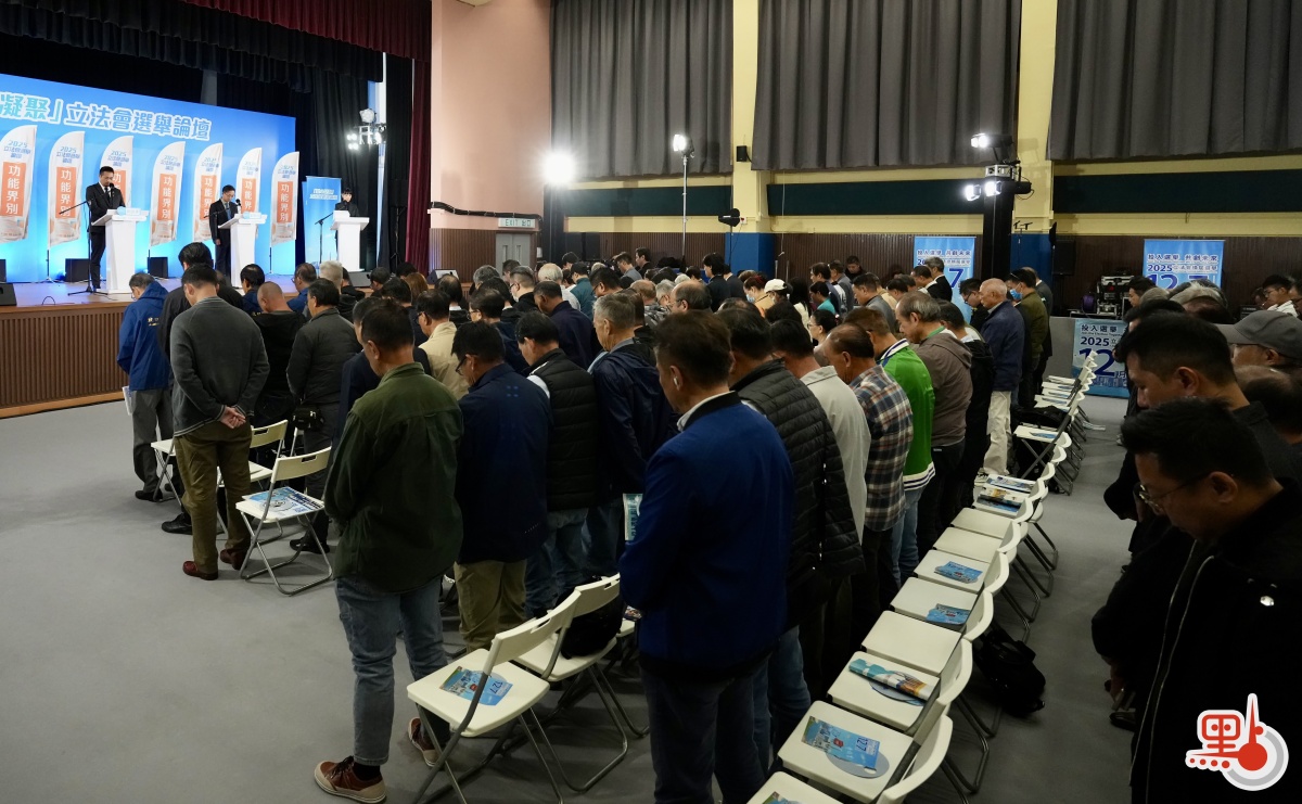 論壇開始前,全場起立為宏福苑火災罹難者默哀一分鐘,並取消助選團打氣環節,氣氛莊重肅穆。