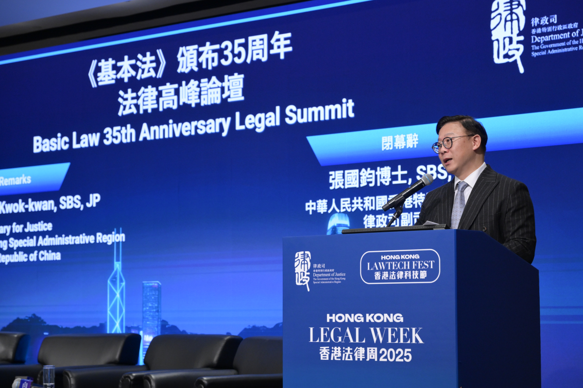 【點新聞報道】由律政司舉辦的「香港法律周2025」基本法頒布35周年法律高峰論壇今日(4日)舉行。律政司副司長張國鈞進行閉幕致辭時表示,香港回歸28年來能夠保持繁榮穩定,全賴憲法和基本法共同構成香港特別行政區的憲制基礎。他提到,在基本法的保駕護航下,香港必定能乘風破浪,充分發揮「三中心一高地」的優勢,無縫融入國家發展大局,實現「一國兩制」事業的高質量發展。