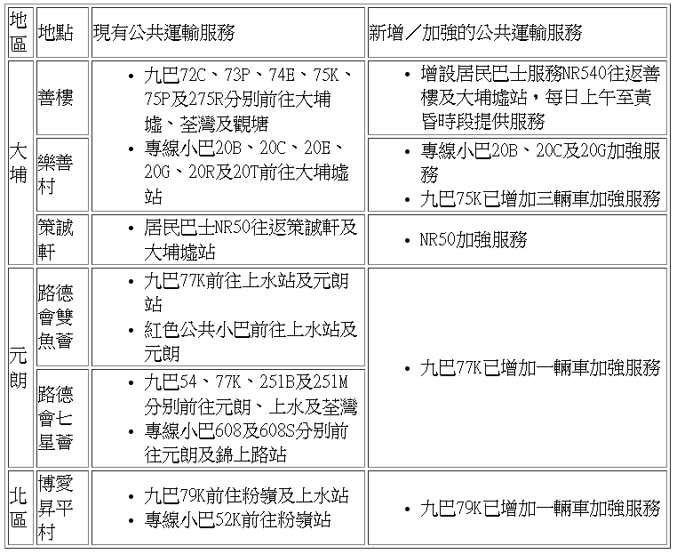 至今各過渡性房屋項目的公共運輸服務: