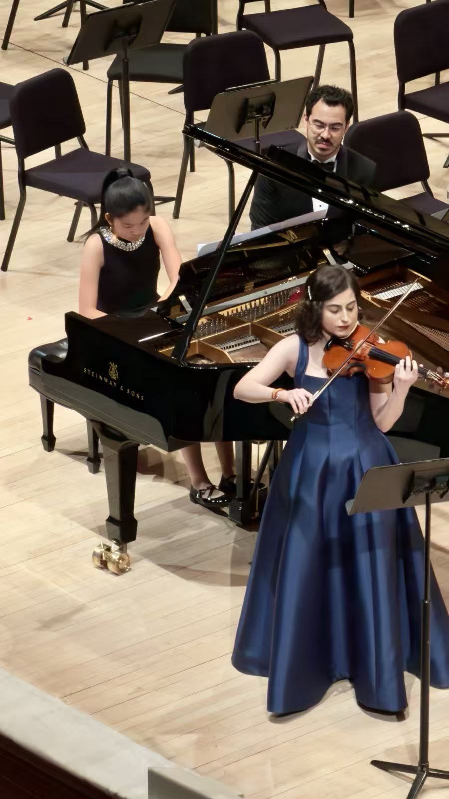 【點新聞報道】今年是聯合國成立80周年。當地時間12月3日、5日晚,來自香港漢基國際學校12歲小朋友張潤楓(Kelly),應邀作為香港「音樂之帆」的形象大使,在紐約聯合國總部小音樂廳、卡耐基音樂中心奏響李斯特的《愛之夢》和《The flight of the bumblebee》,與來自世界各地的外交官們,一起慶祝這值得紀念的時刻,其間受到聯合國第80屆會議主席安娜萊娜·貝爾伯克(Annalena Baerbock)的親切會見。