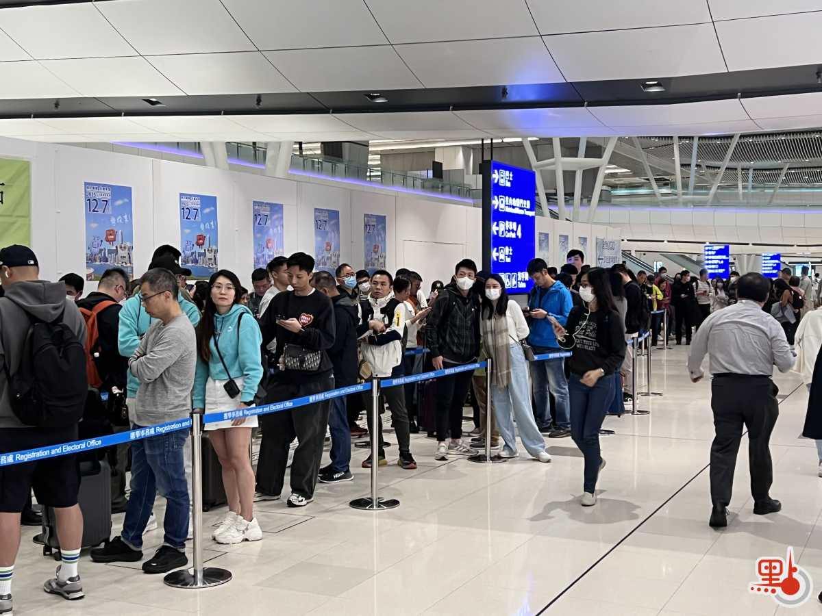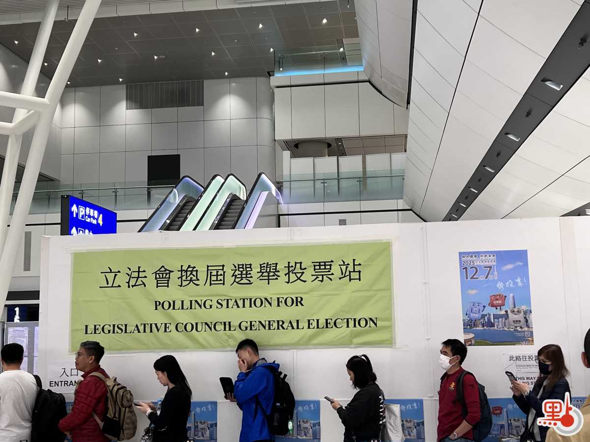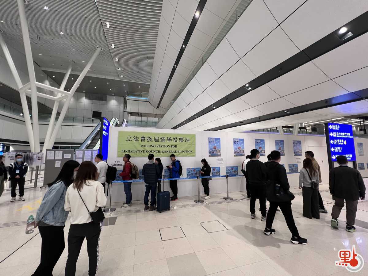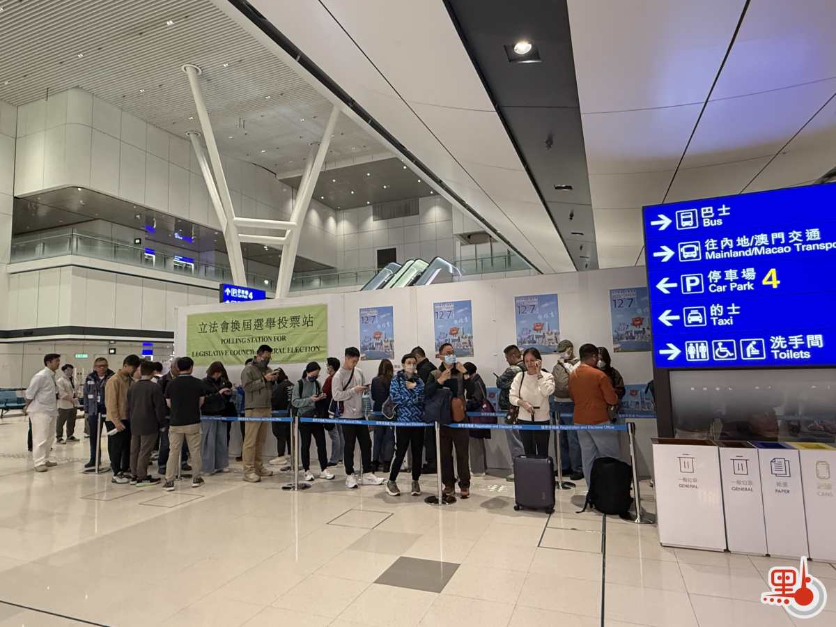【點新聞報道】2025年立法會換屆選舉今日(12月7日)舉行,投票時間提早至7時半開始,延至晚上11時半結束。今早7時剛過,點新聞記者在機場設立的鄰近邊境投票站見到不少選民排隊等候投票。至今早7時半投票站開閘,現場已有至少60名選民排隊。