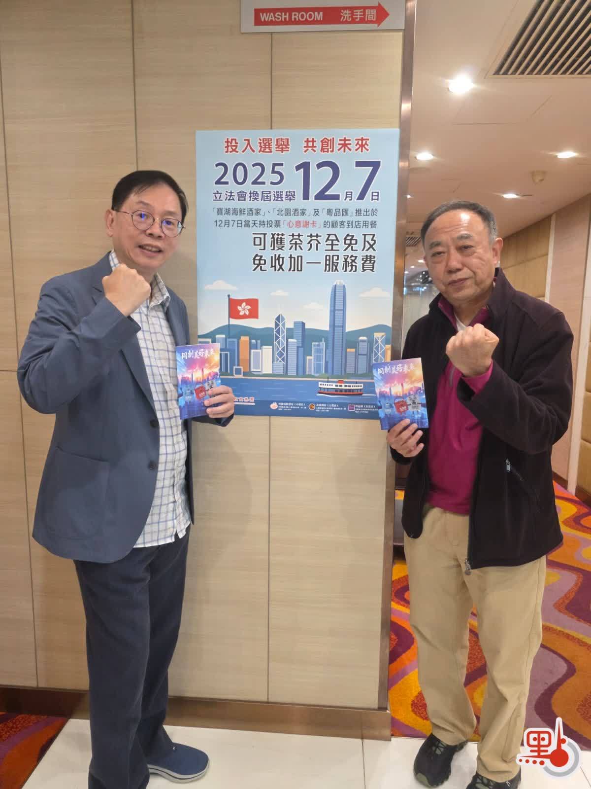 酒家李經理向香港文匯報記者介紹,當日中午12時開市後,現場即有約8-9台客人進店用餐,當中5台客人主動出示投票「心意謝卡」享受優惠,選民參與熱情頗高。