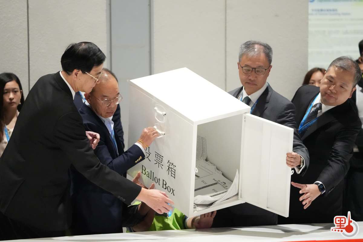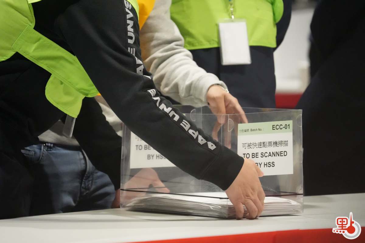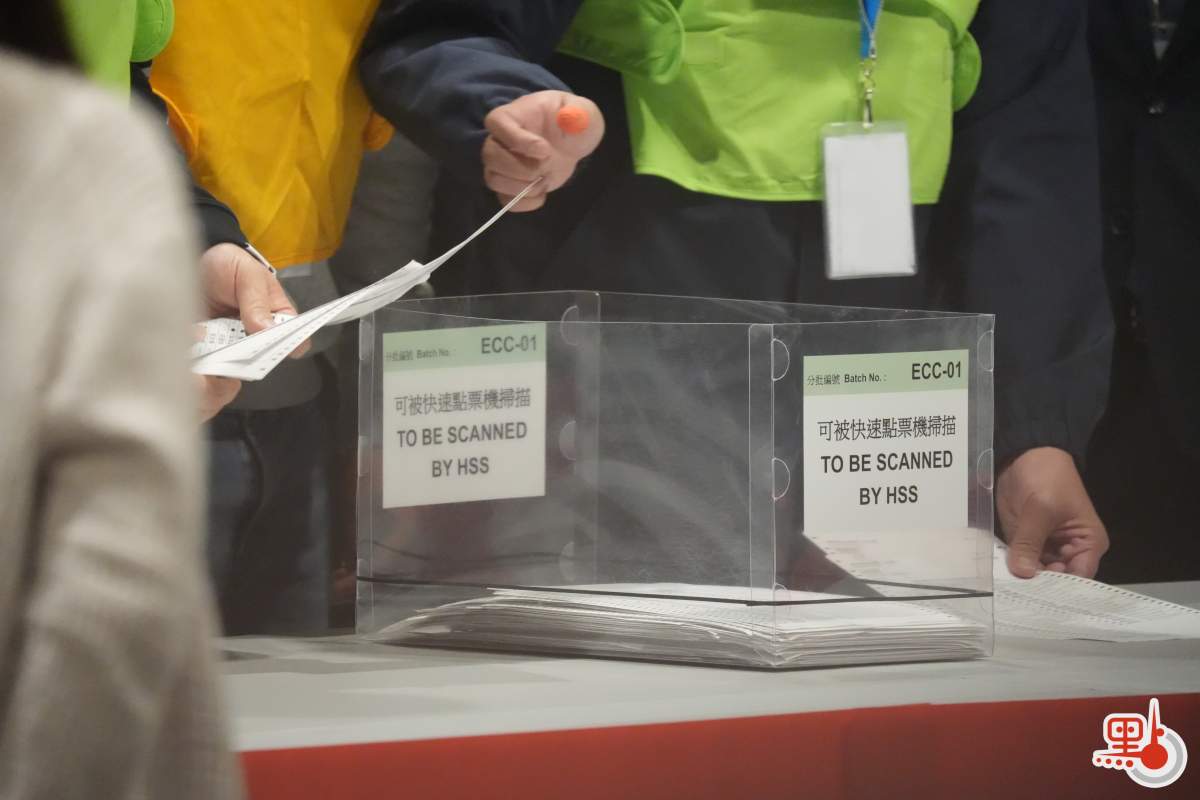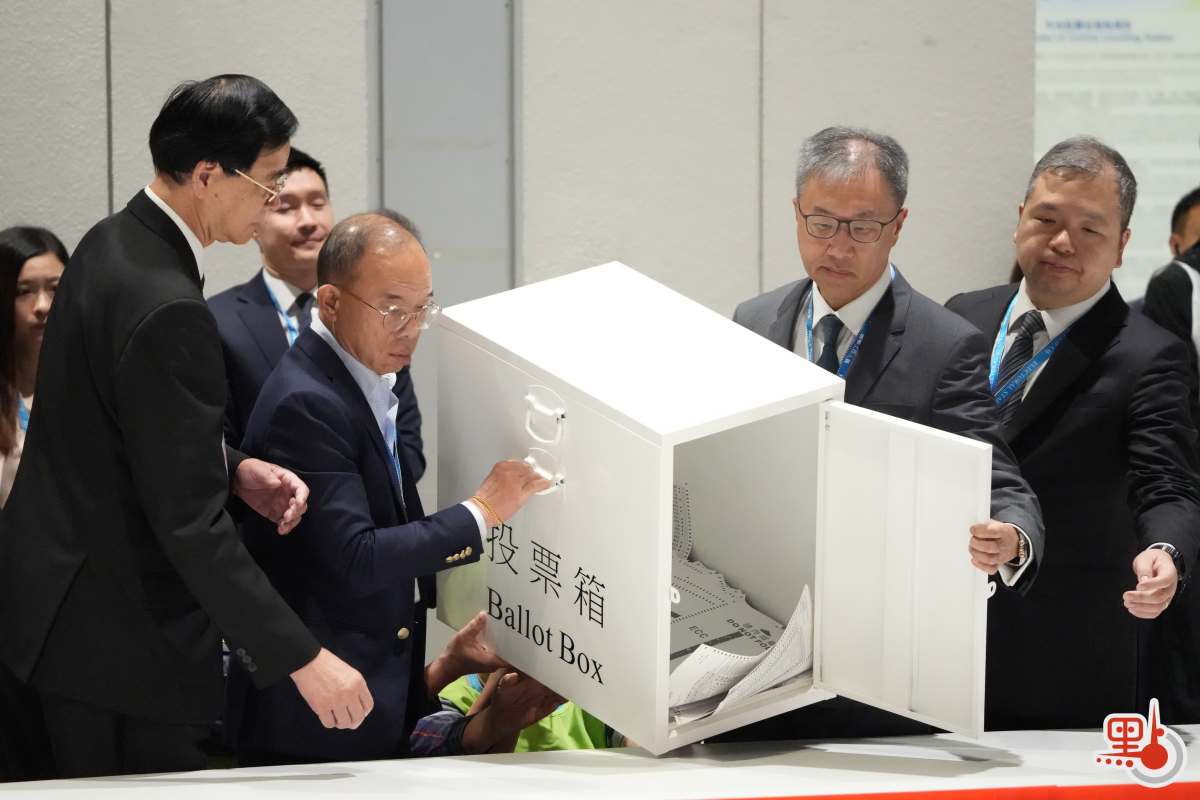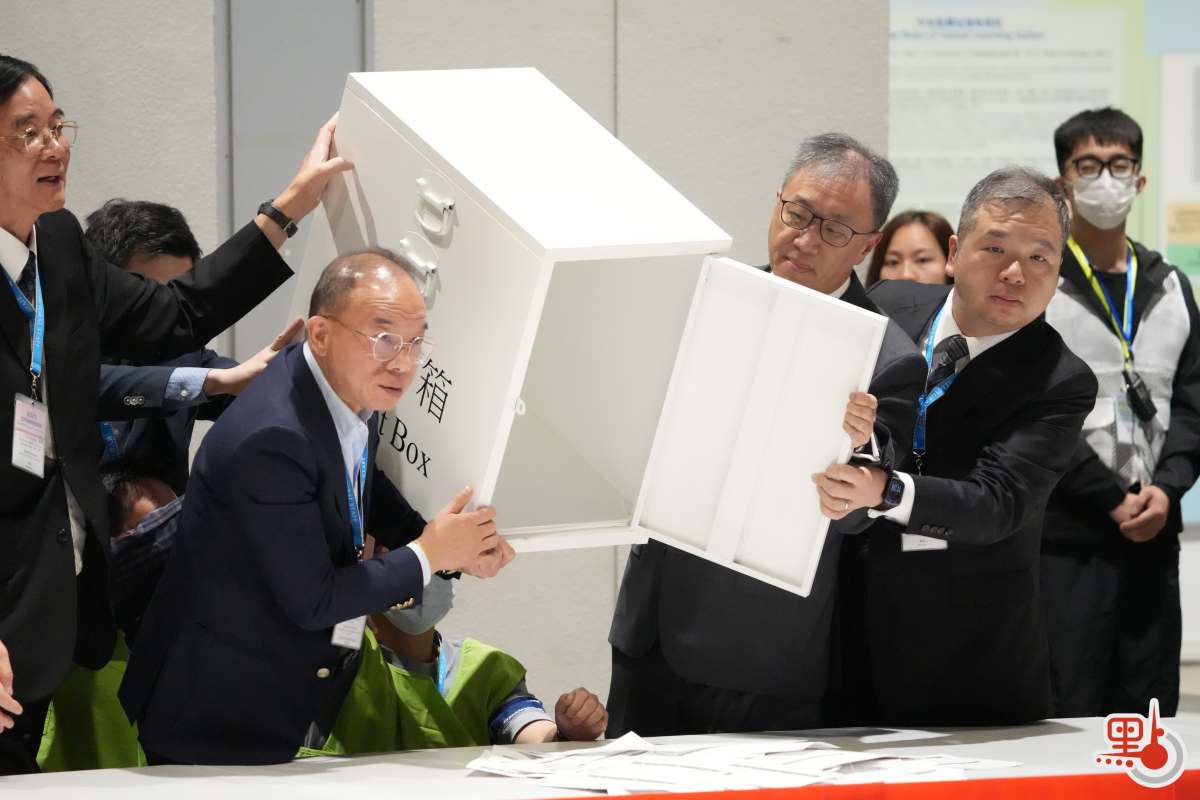 晚上約11時40分,選舉管理委員會主席陸啟康與政制及內地事務局局長曾國衞,在灣仔會展中心中央點票站率先倒出票箱內的選票,其後工作人員陸續分類和點算選票。