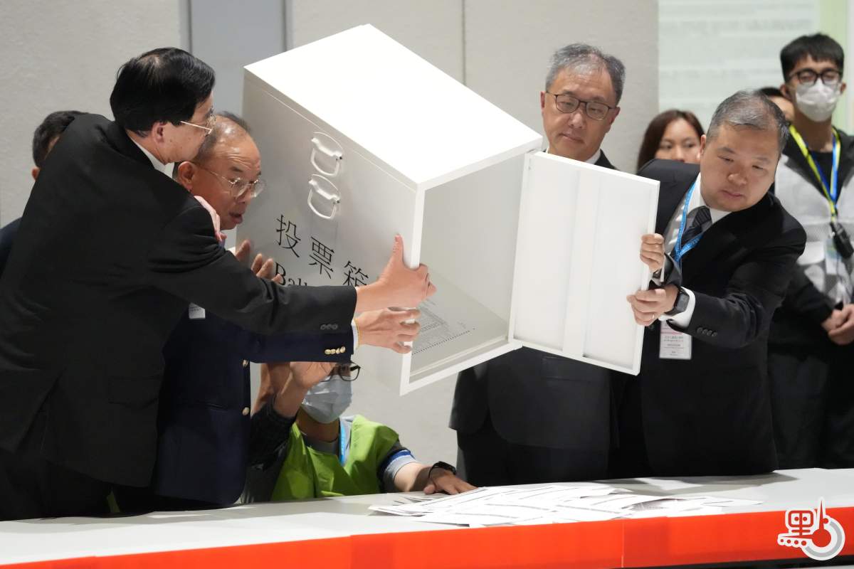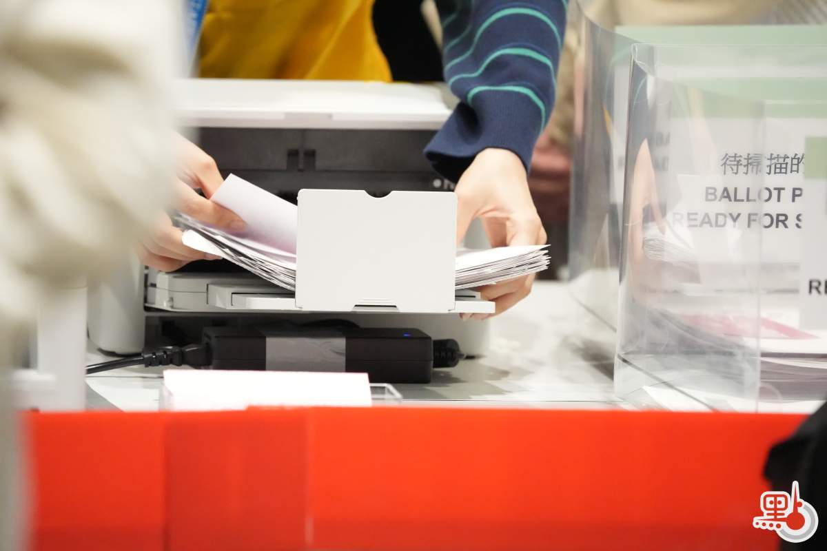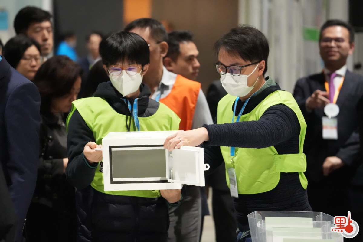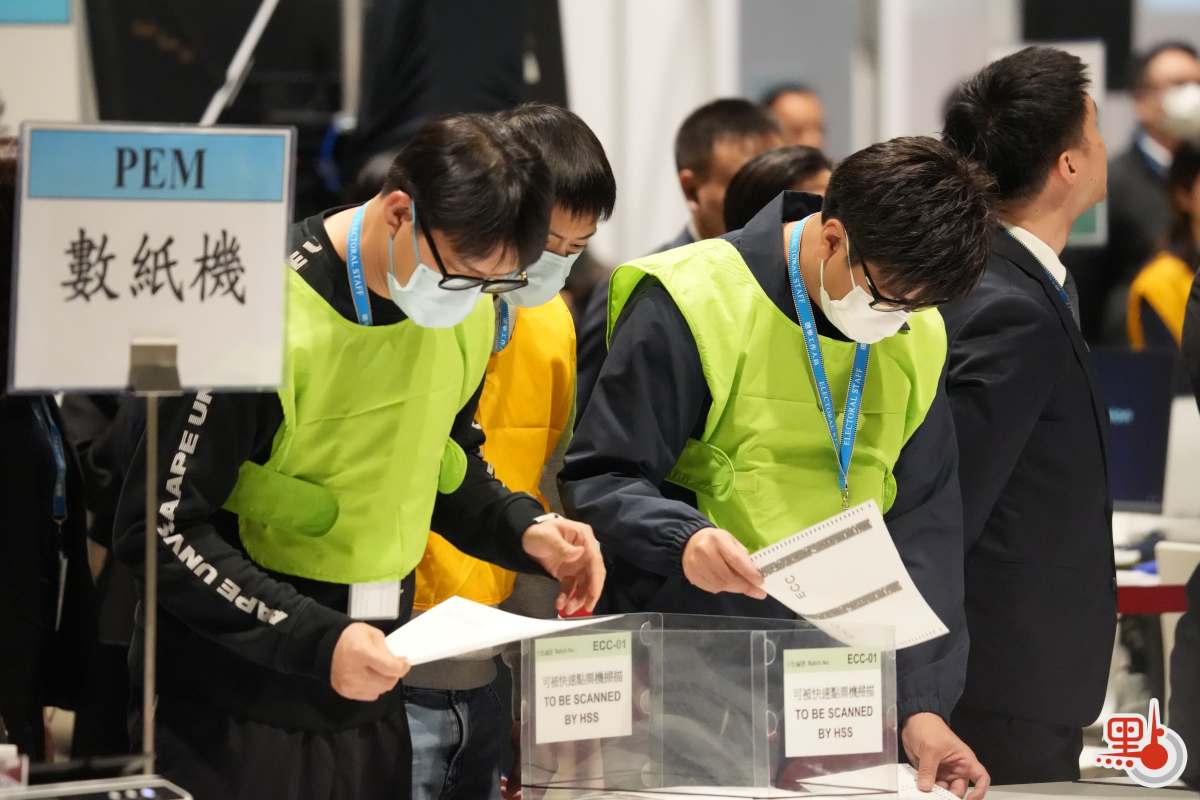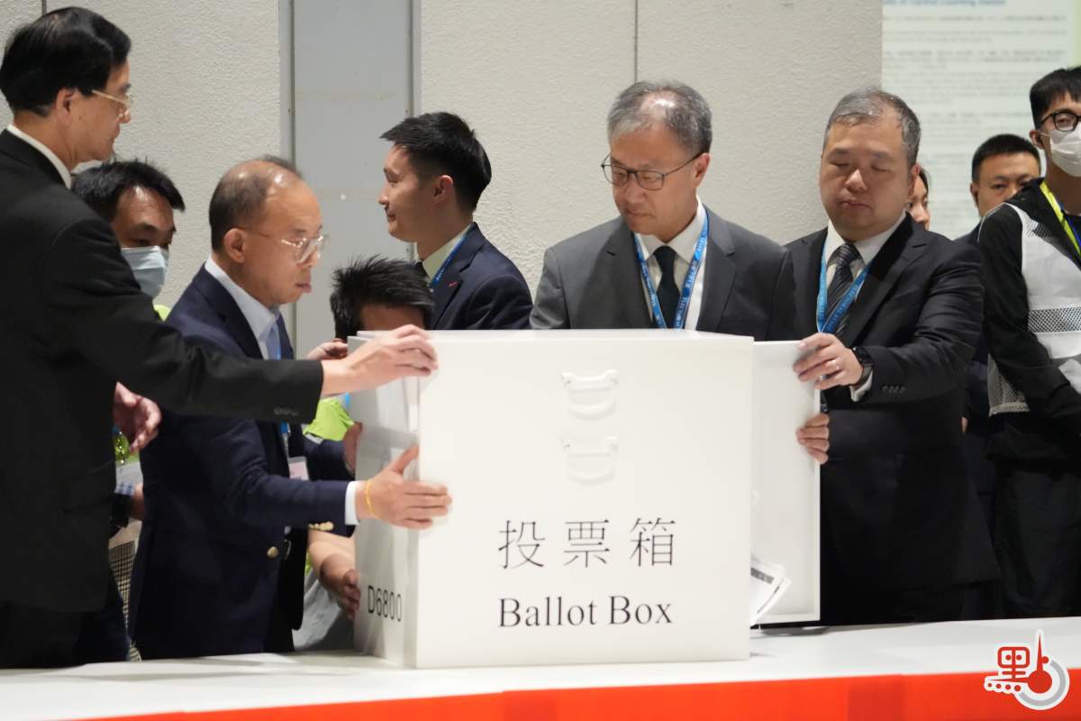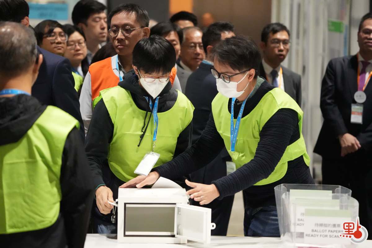 晚上約11時40分,選舉管理委員會主席陸啟康與政制及內地事務局局長曾國衞,在灣仔會展中心中央點票站率先倒出票箱內的選票,其後工作人員陸續分類和點算選票。