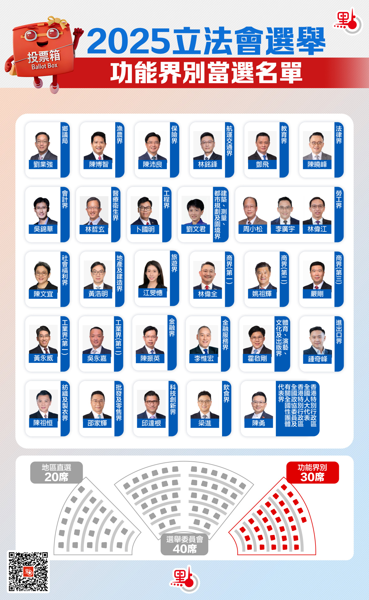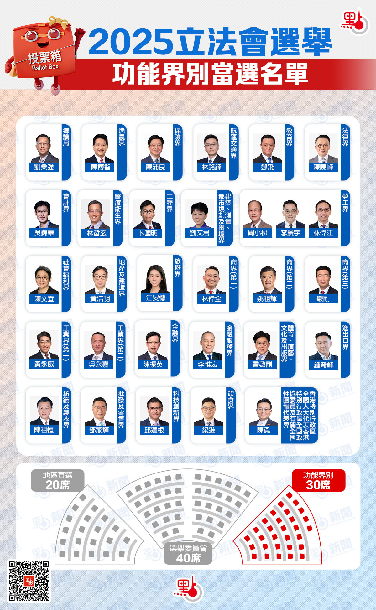 功能界別30人當選名單: