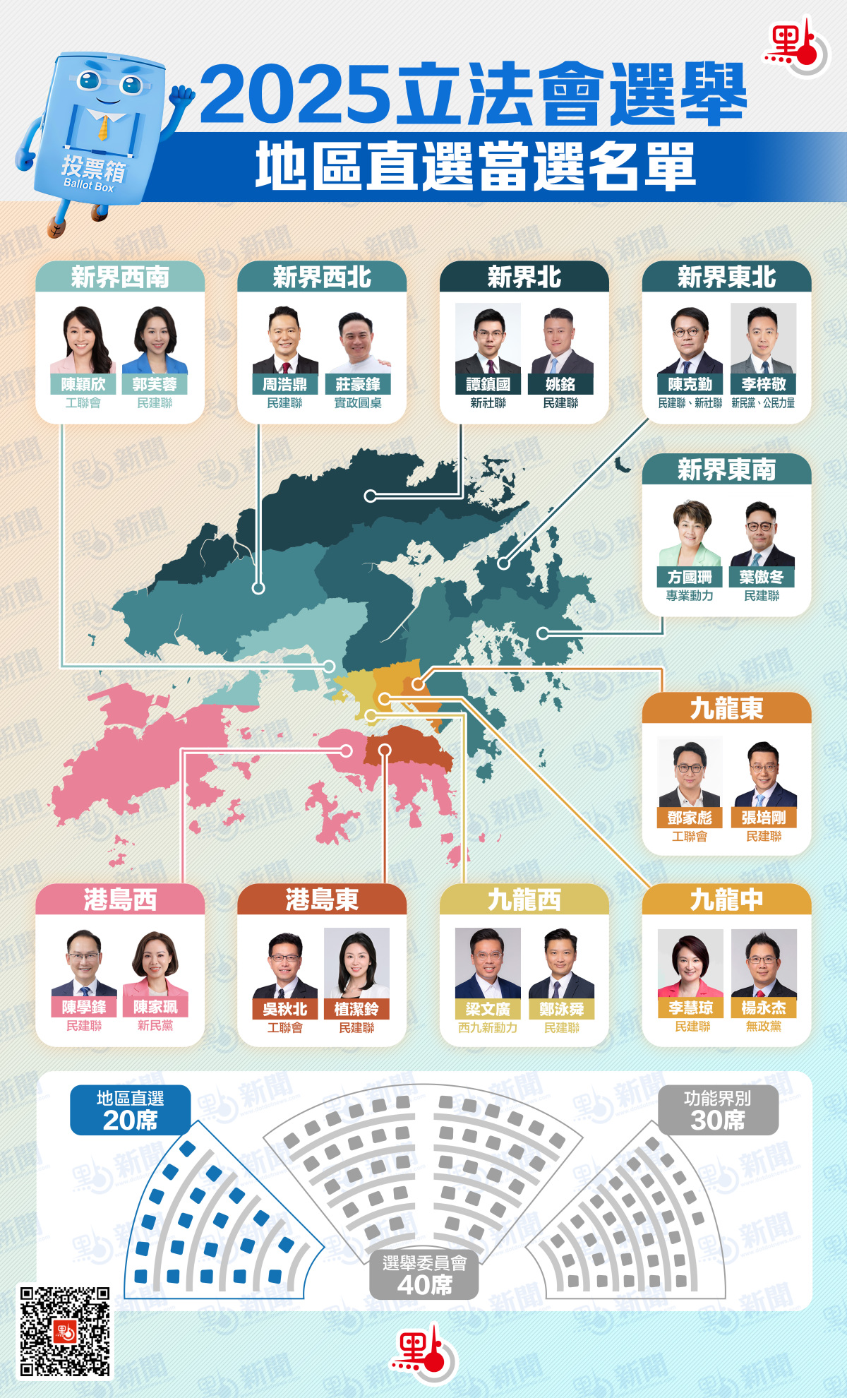 新一屆立法會90名議員名單於今早(8日)已經全部出爐,點新聞製作了「全家福」,助您一圖睇清90人當選名單!