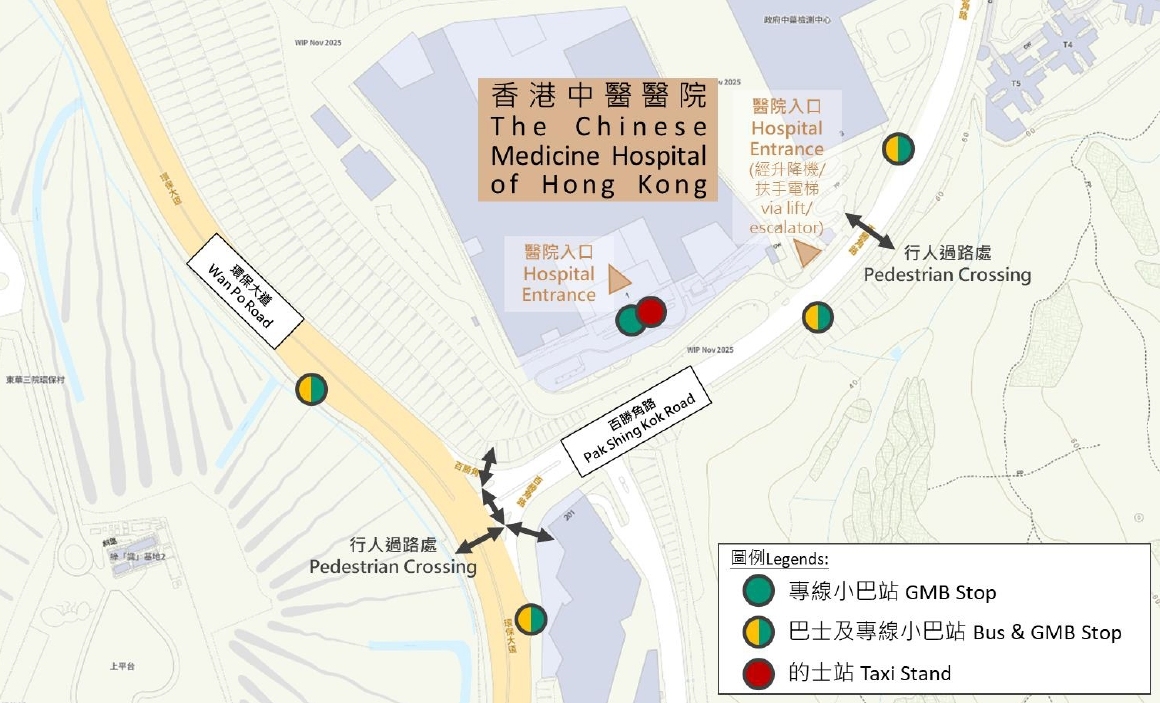 有關公共運輸服務的詳情,市民可參閱運輸署網頁(www.td.gov.hk)、交通通告及香港中醫醫院網站(www.cmhhk.org.hk),或公共運輸服務營辦商發出的乘客通告。