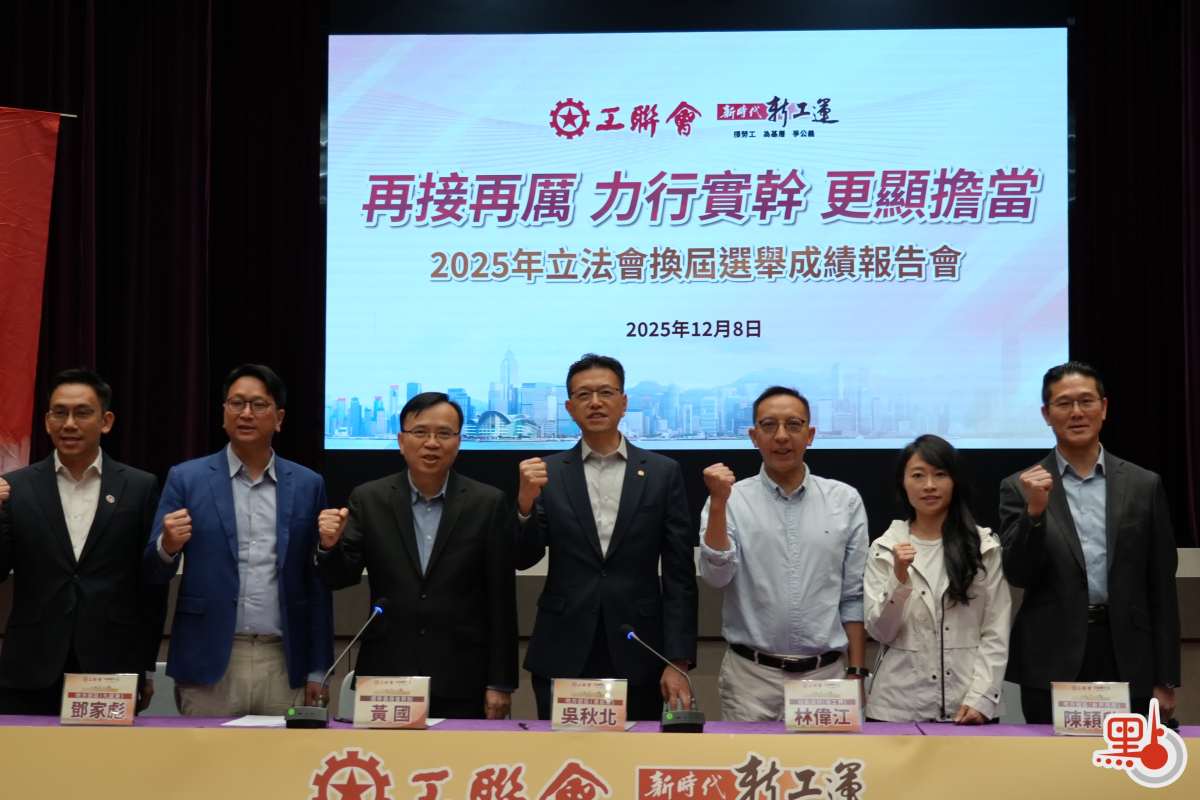 【點新聞報道】香港特區第八屆立法會選舉於12月7日舉行,新一屆立法會90名議員名單於今早(8日)已全部出爐。其中,工聯會奪得7個議席,成為新一屆立法會排名第三的政黨,僅次於經民聯。工聯會成功當選立法會議員的成員包括:會長吳秋北、鄧家彪和陳穎欣,三人分別在港島東、九龍東及新界西南成功連任。選委界方面,理事長黃國成功連任,梁子穎「轉跑道」當選;而林偉江和李廣宇則分別在功能界別勞工界取得席位。