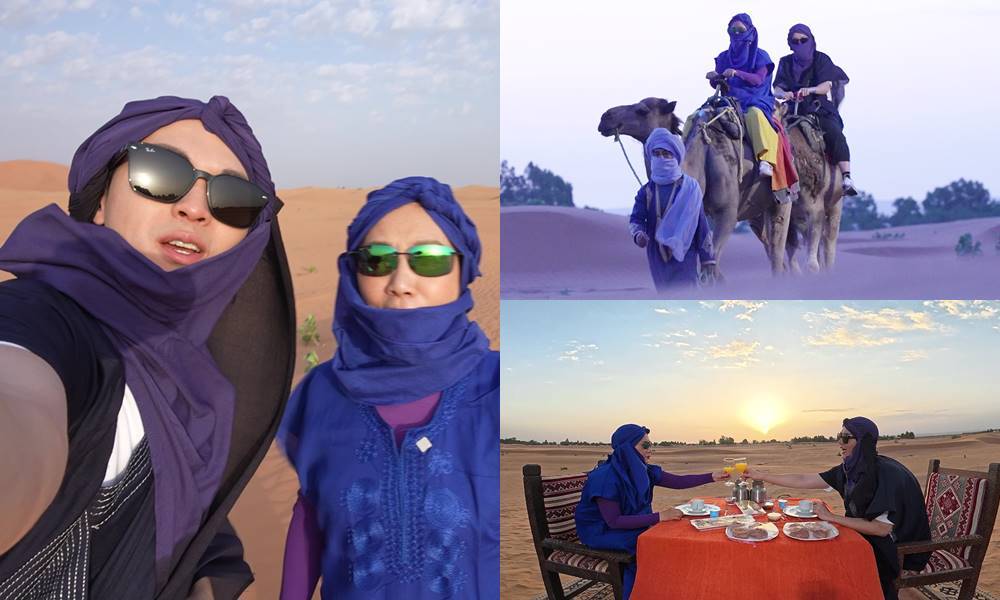 阿姐與Nicholas先是坐長達8個小時車程抵達撒哈拉沙漠。二人坐車出發攀上沙漠高原時,由於路途崎嶇、加上沙地易陷,令攝製隊乘坐的吉普車震個不停,Nicholas不但嚇到狂拋「驚嚇表情包」、更震住把聲講節目Tag,並笑言「自帶震音」;阿姐則因而想起當年拍攝劇集《怒劍嘯狂沙》點滴:「嗰啲風一吹呢,啲沙真係會入眼,咁嗰日成日都會流眼淚㗎喇」、「踩沙漠山好難,踏一步係會退番落嚟三、四步……不過呢啲經驗都要試下嘅。」阿姐還笑言幸好坐車前沒有「食咁飽」,十分幽默。